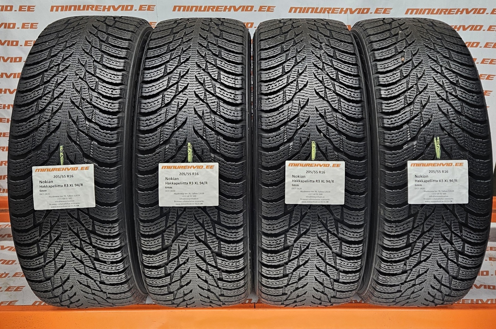 Used studless winter tire 205/55R16 Nokian Hakkapeliitta R3 XL 94/R.