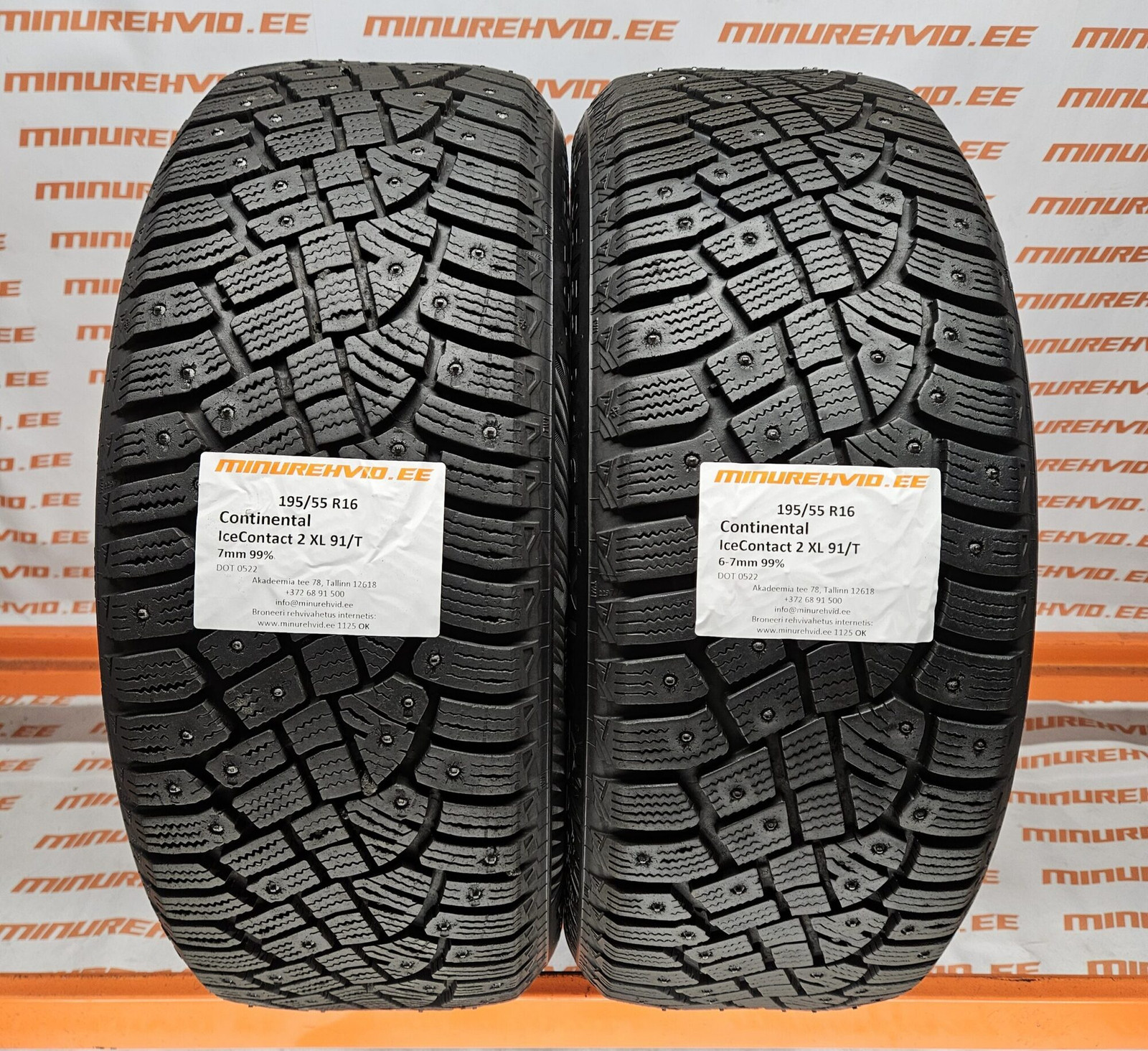 Used studded tire 195/55R16 Continental IceContact 2 XL 91/T 0522/