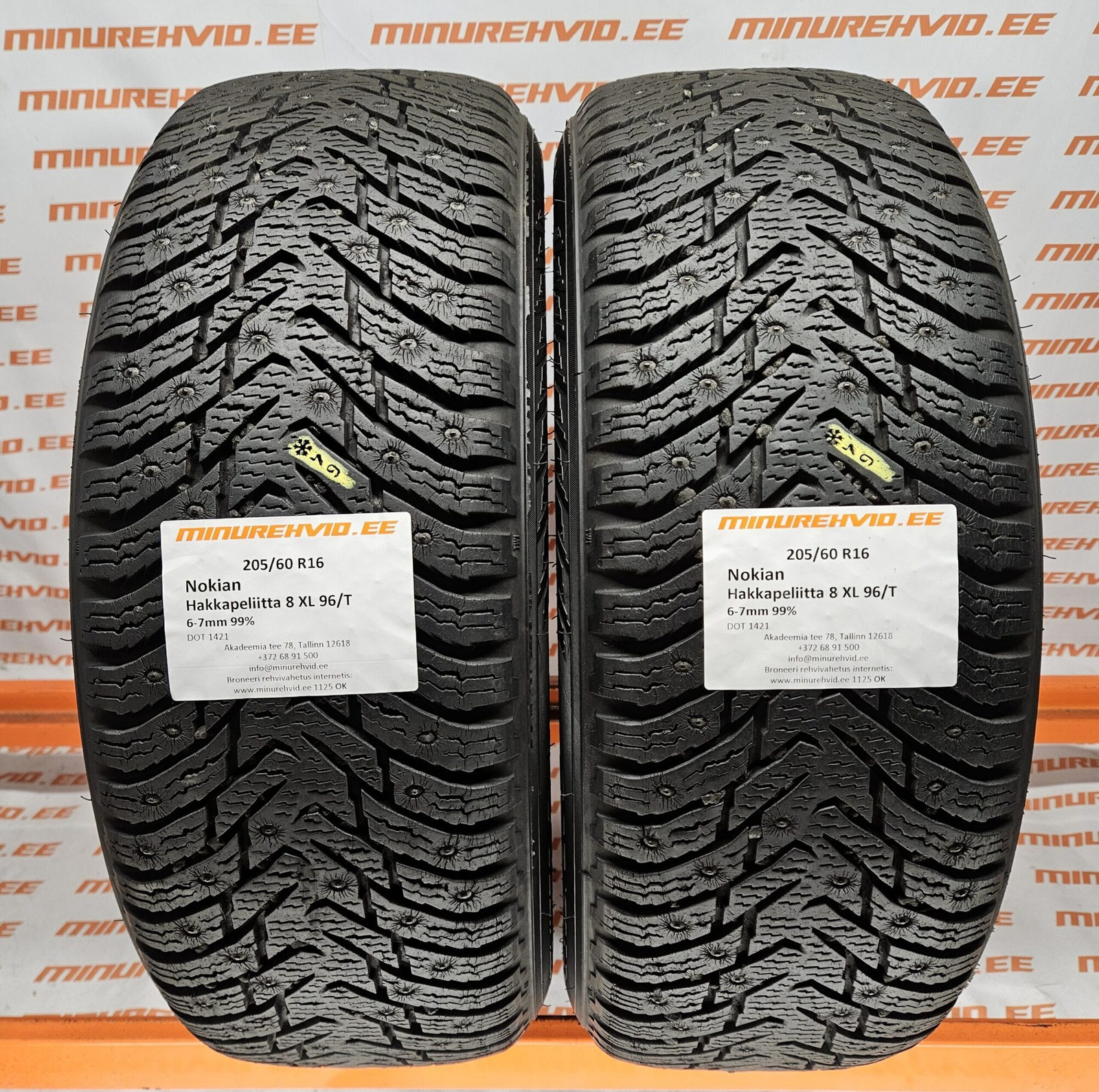 Used studded tire 205/60R16 Nokian Hakkapeliitta 8 XL 96/T 1421 + 3921