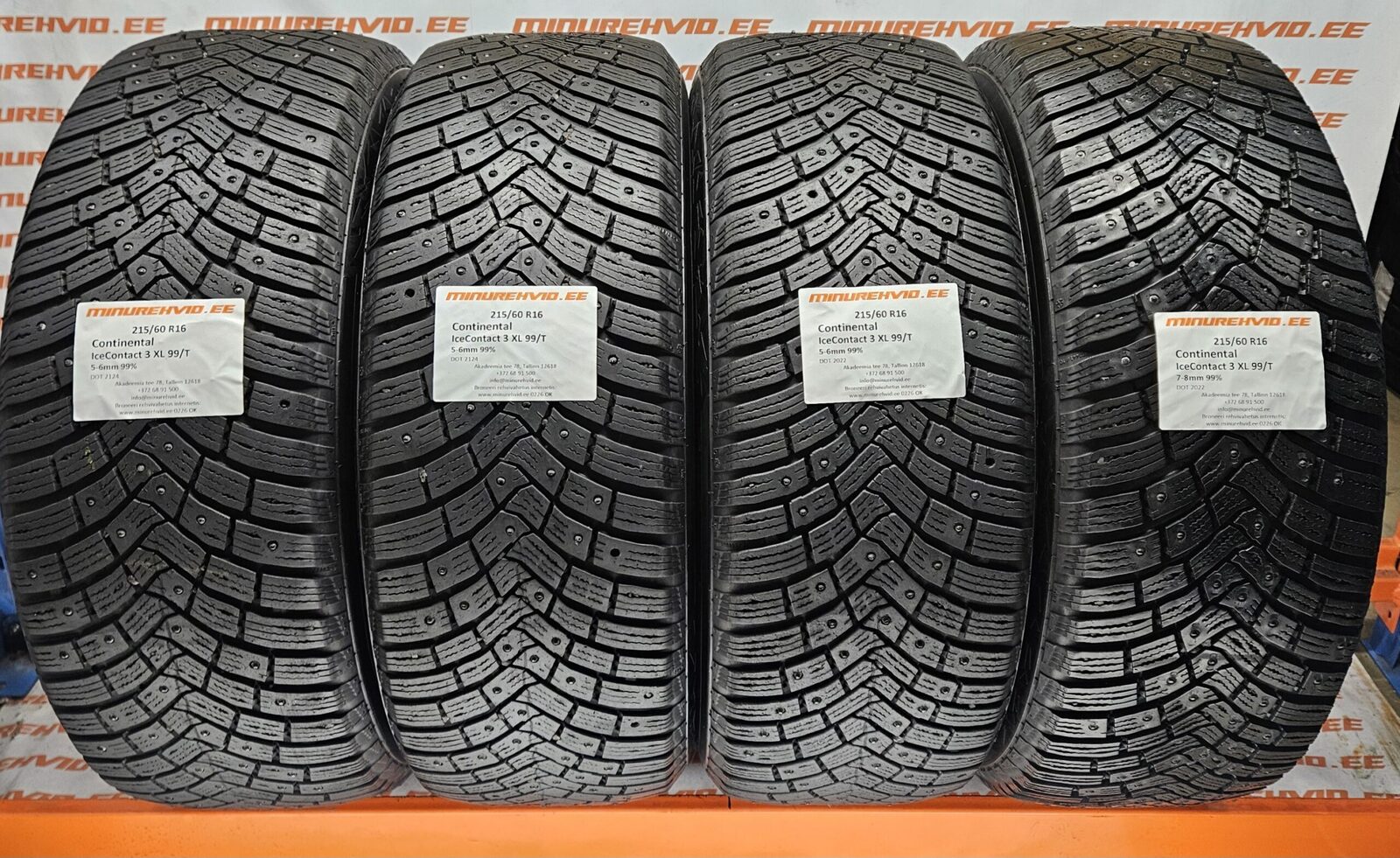 Used studded tire 215/60R16 Continental IceContact 3 XL 99/T 2124 + 2022