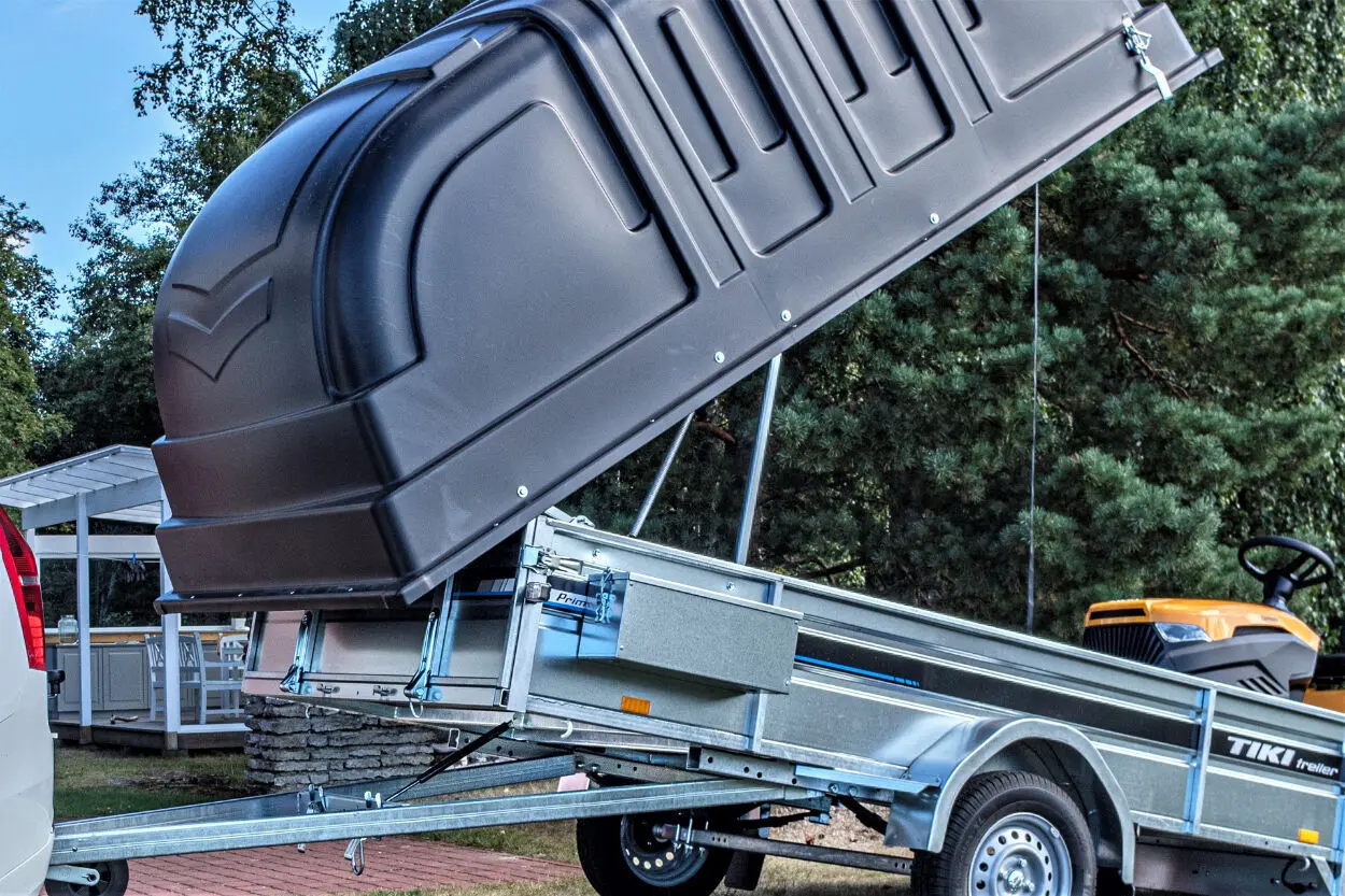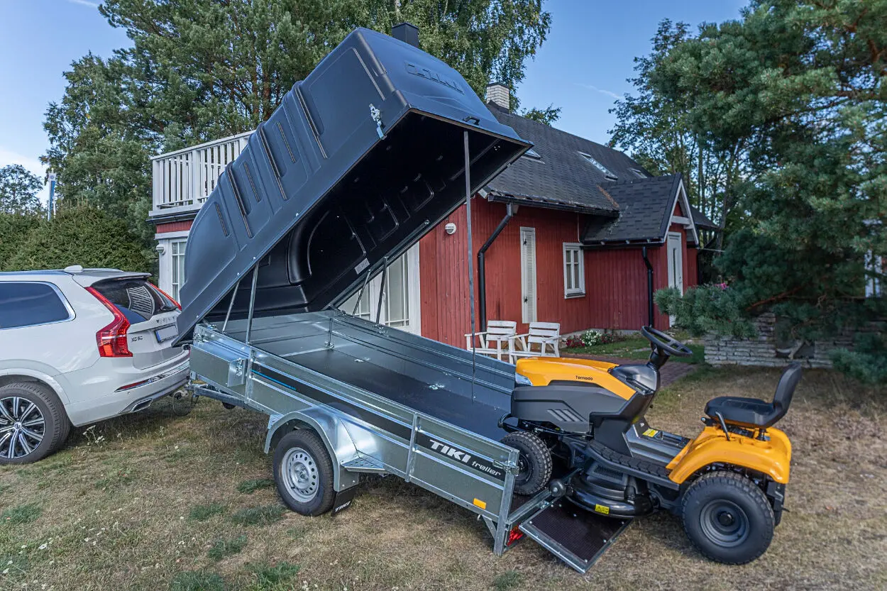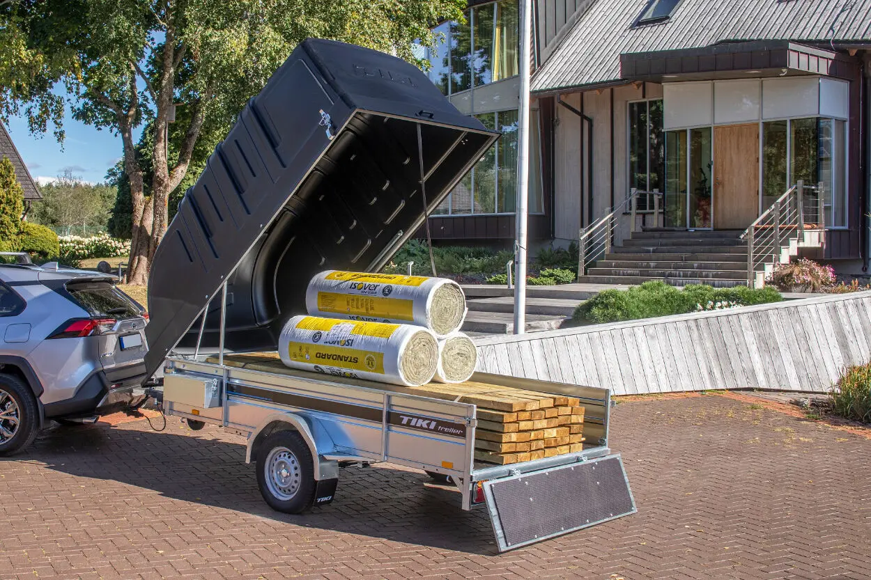 - Komplektis sisaldub enim ostetud keevisraamiga kastihaagis koos kõige rohkem kasutust leidva lisavarustusega. See tugev täiskeevisraamil kastihaagis on loodud põhjamaistesse oludesse liiklemiseks. Kastimõõt 3×1,5m mahutab kuni 3 meetri pikkuse ehitusmaterjali ja kõik muud kodumajapidamises ettetulevad asjad, mida vedada. Pikemate esemete vedamiseks saab esi- ja tagaluugi hõlpsasti eemaldada. Plastkaas kaitseb nii veost kui ka haagist ennast ilmastikust tulenevate kahjustuste eest. Libisemisvastase vineeriga tugevdatud tagaluuk sobib kasutamiseks peale- ja mahasõidul kergemate sõidukitega näiteks murutraktor, ATV jms. Gaasiamort aitab sõidukiga peale sõites hoida haagise kallutusasendit ja veokast langeb sujuvamalt tagasi transpordi asendisse. Komplektis veel ka nii esi kui taga LED-tuled ja tööriistakast