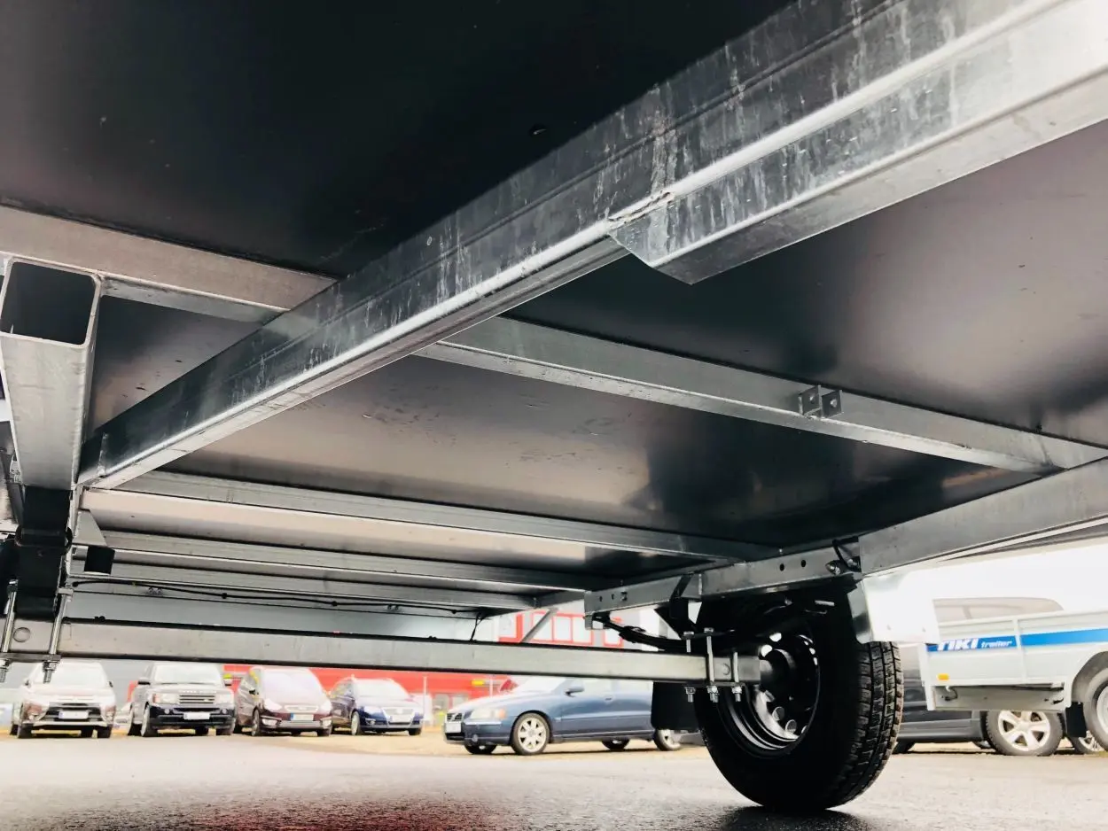 - Ülitugev täiskeevisraamil haagis, mis on valmistatud kõrgema täpsusklassiga laserlõigatud detailidest (ainsana Eestis). Koormusttaluvad külje- ja otsapoordid on põhjamaistesse oludesse Soomes toodetud HDG kattega tsingitud lehtmetallist. Vastupidavuse tagab õliamortisaatoritega 2x4-leheline veekindlate rummudega vedrustussüsteem Knott (Saksa). Aspöck (Austria) ilmastikukindel elektrisüsteem ja tuled. Veekindel libisemiskindla pinnakattega põhjavineer (Soome). Vaieldamatult parima hinna ja kvaliteedi suhtega täiskeevisraamil haagis turul! Võimalik osta koos plastkaanega!