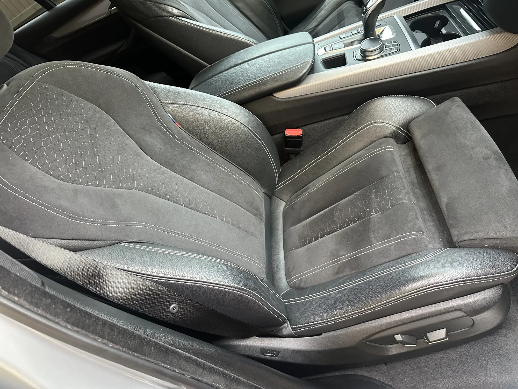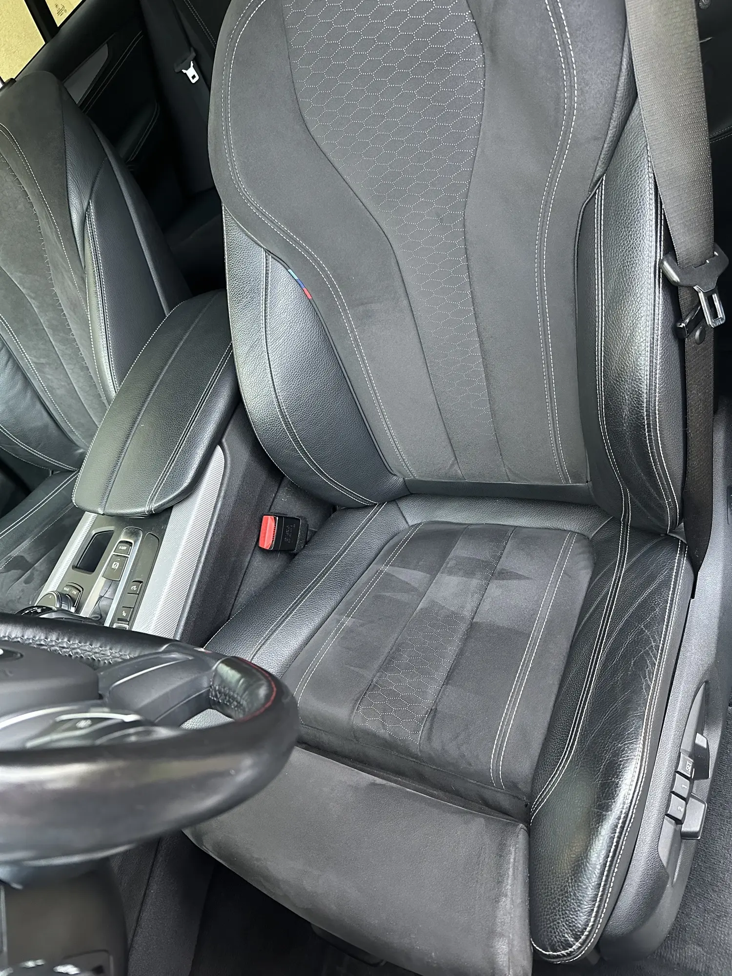 - Center console: leather-wrapped