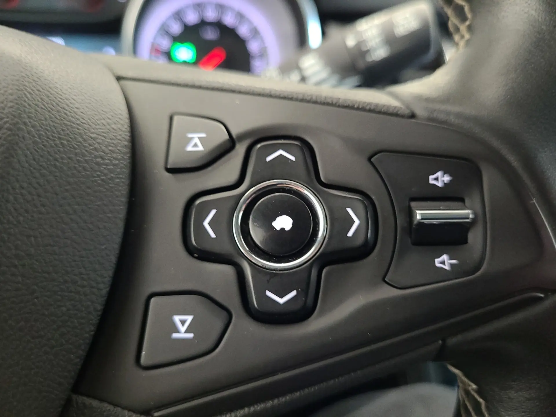 - Nahkkattega rool, millel on raadio juhtnupud ja soojendus