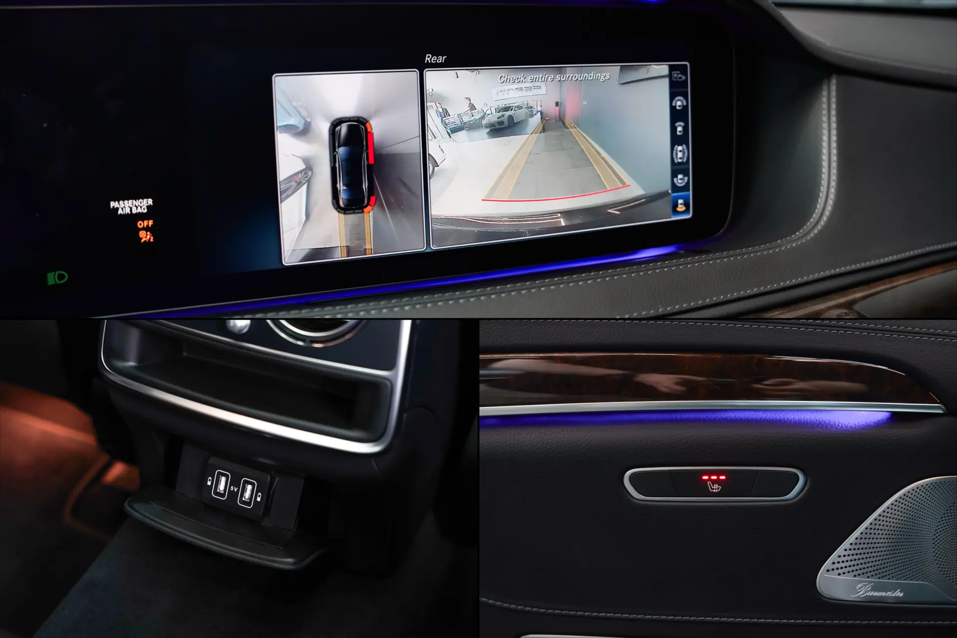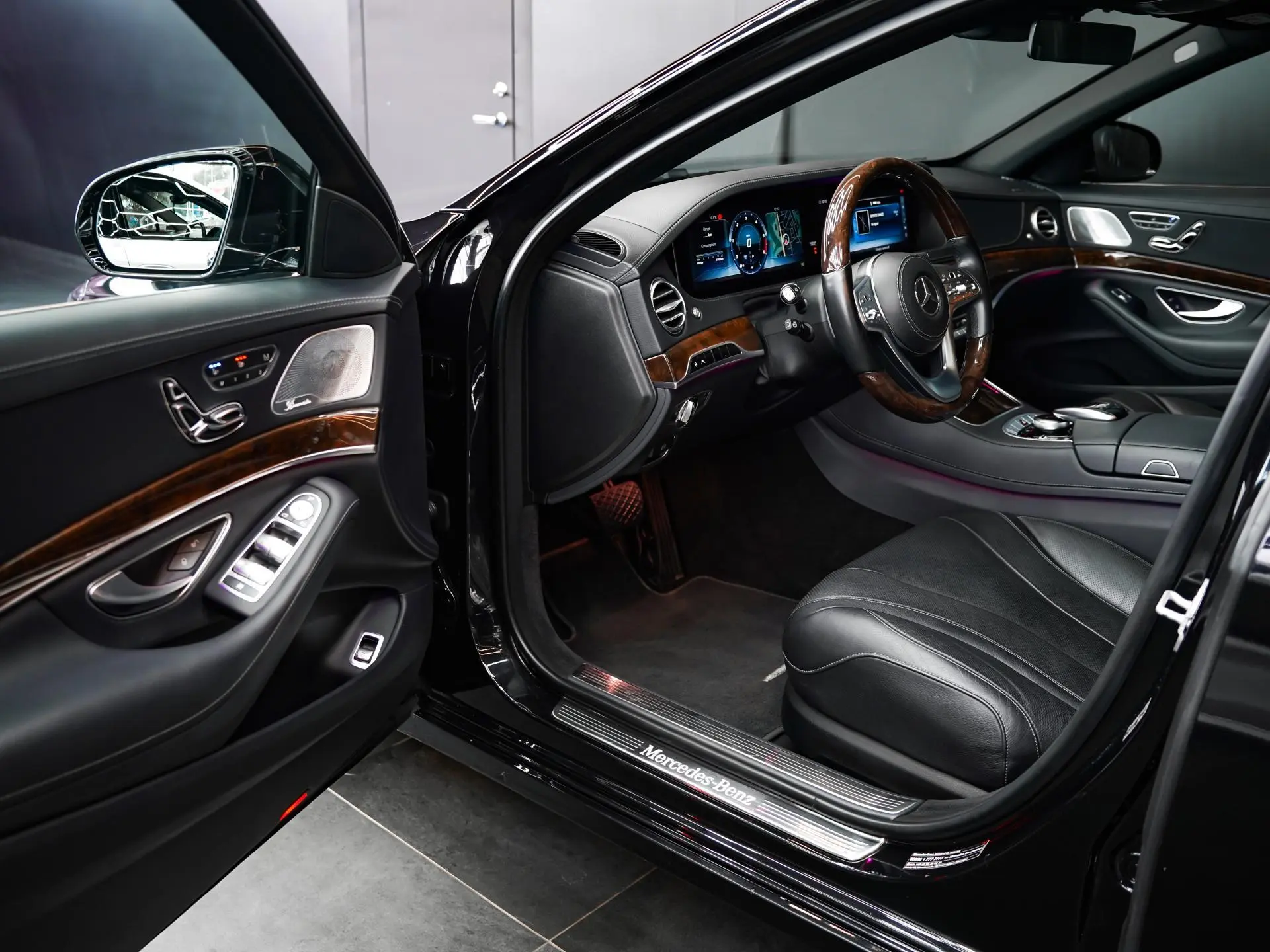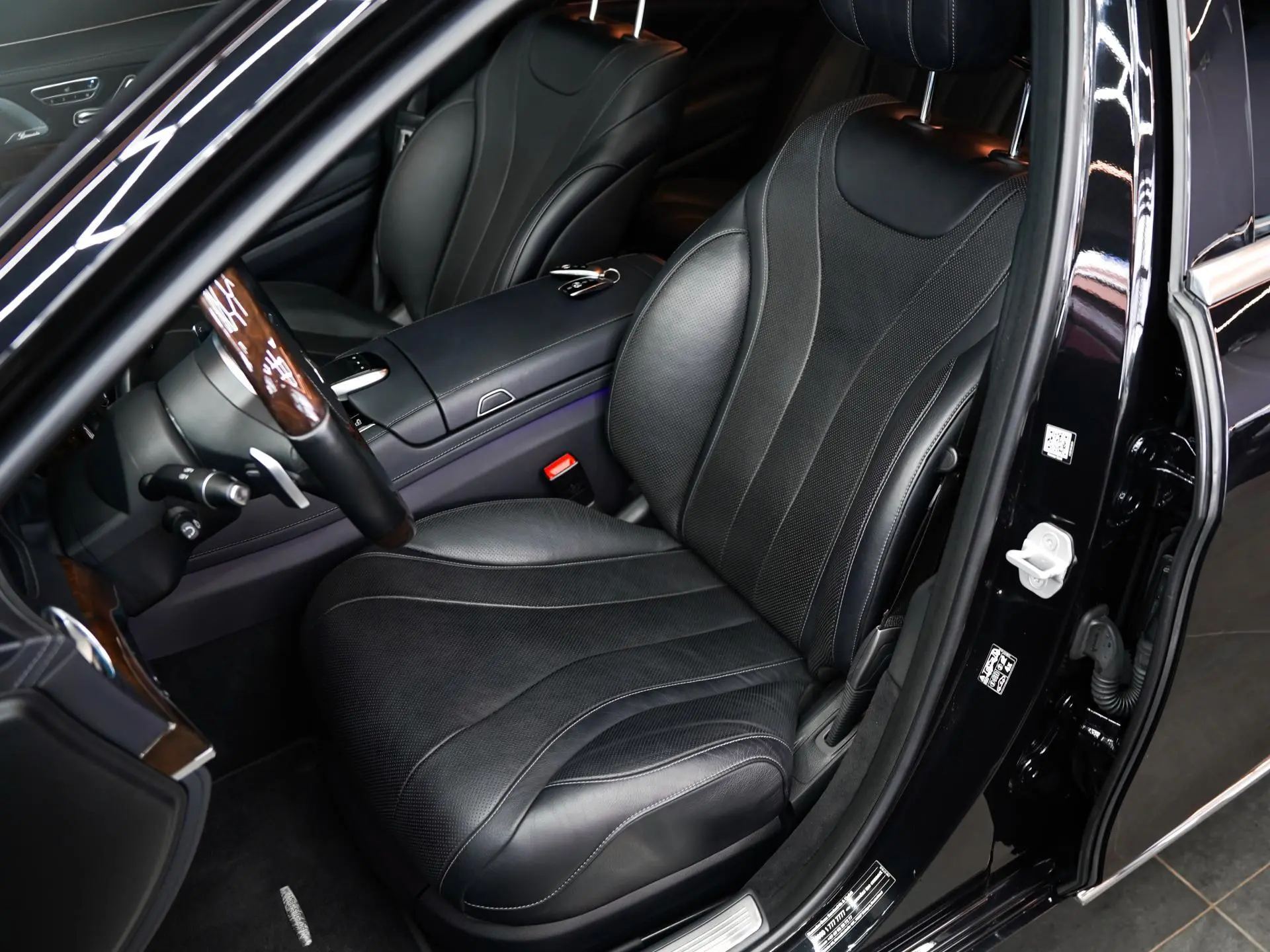Salongis ootab sind must nahkpolster koos kõrgläikelise puitdekooriga, mis loob klassikalise ja hubase atmosfääri. Istmed on ventileeritavad ja soojendusega, ees on olemas ka mälufunktsioon ning massaž. Lisaks on tagaistmed samuti soojendusega. Mugavust lisab panoraamkatus, mis toob salongi rohkem avarust ja valgust.