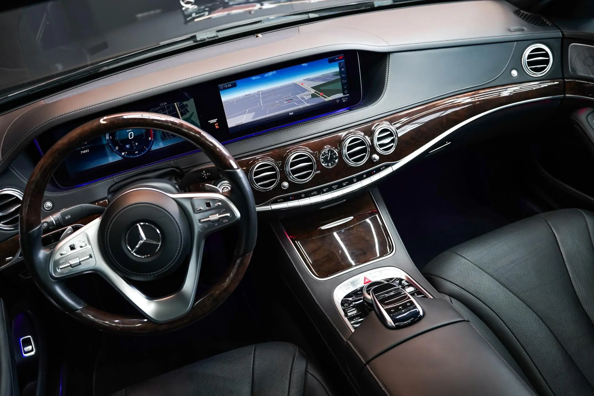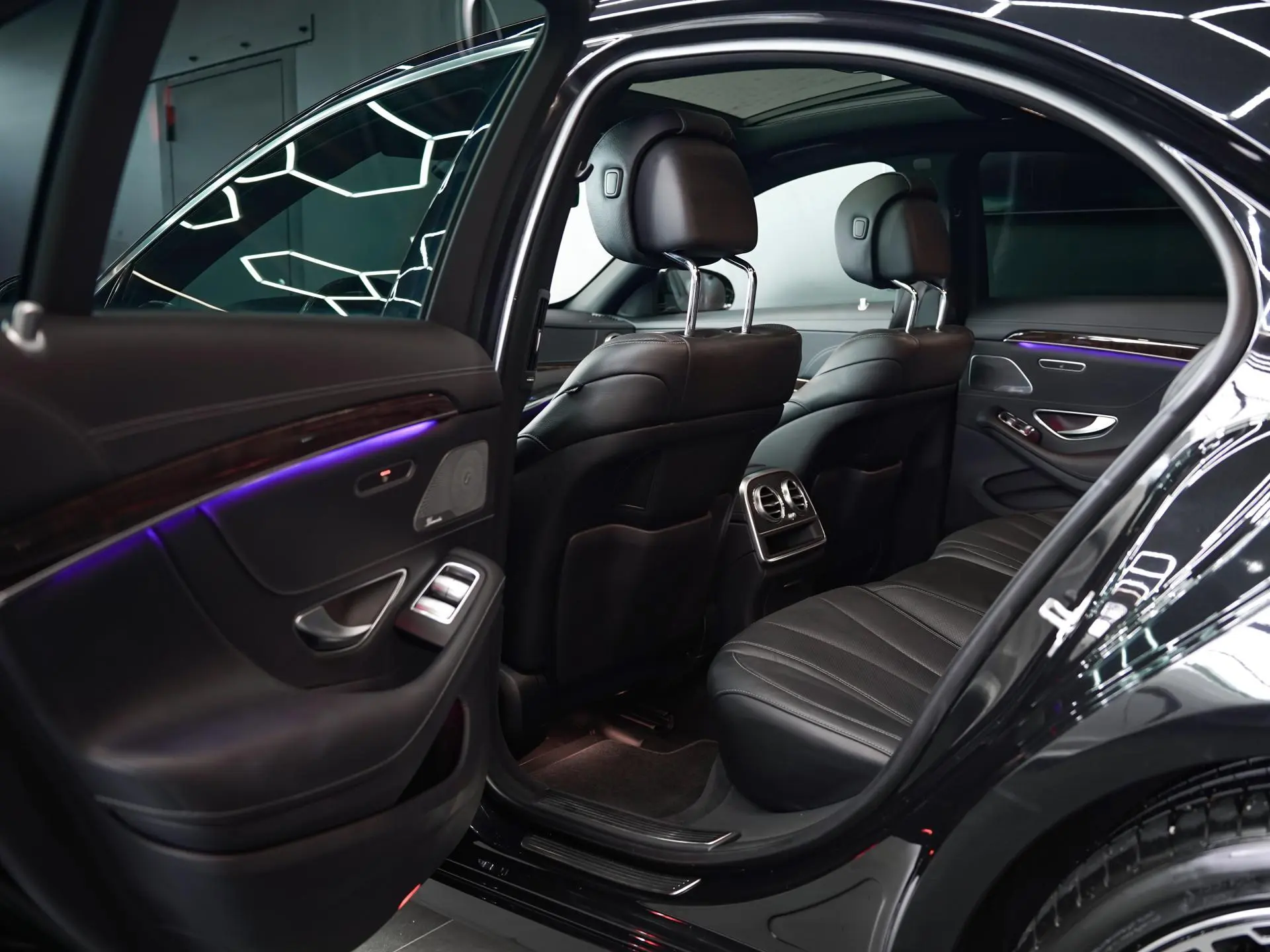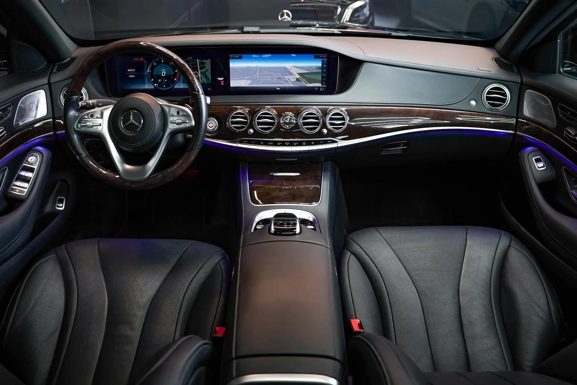Salongis ootab sind must nahkpolster koos kõrgläikelise puitdekooriga, mis loob klassikalise ja hubase atmosfääri. Istmed on ventileeritavad ja soojendusega, ees on olemas ka mälufunktsioon ning massaž. Lisaks on tagaistmed samuti soojendusega. Mugavust lisab panoraamkatus, mis toob salongi rohkem avarust ja valgust.
