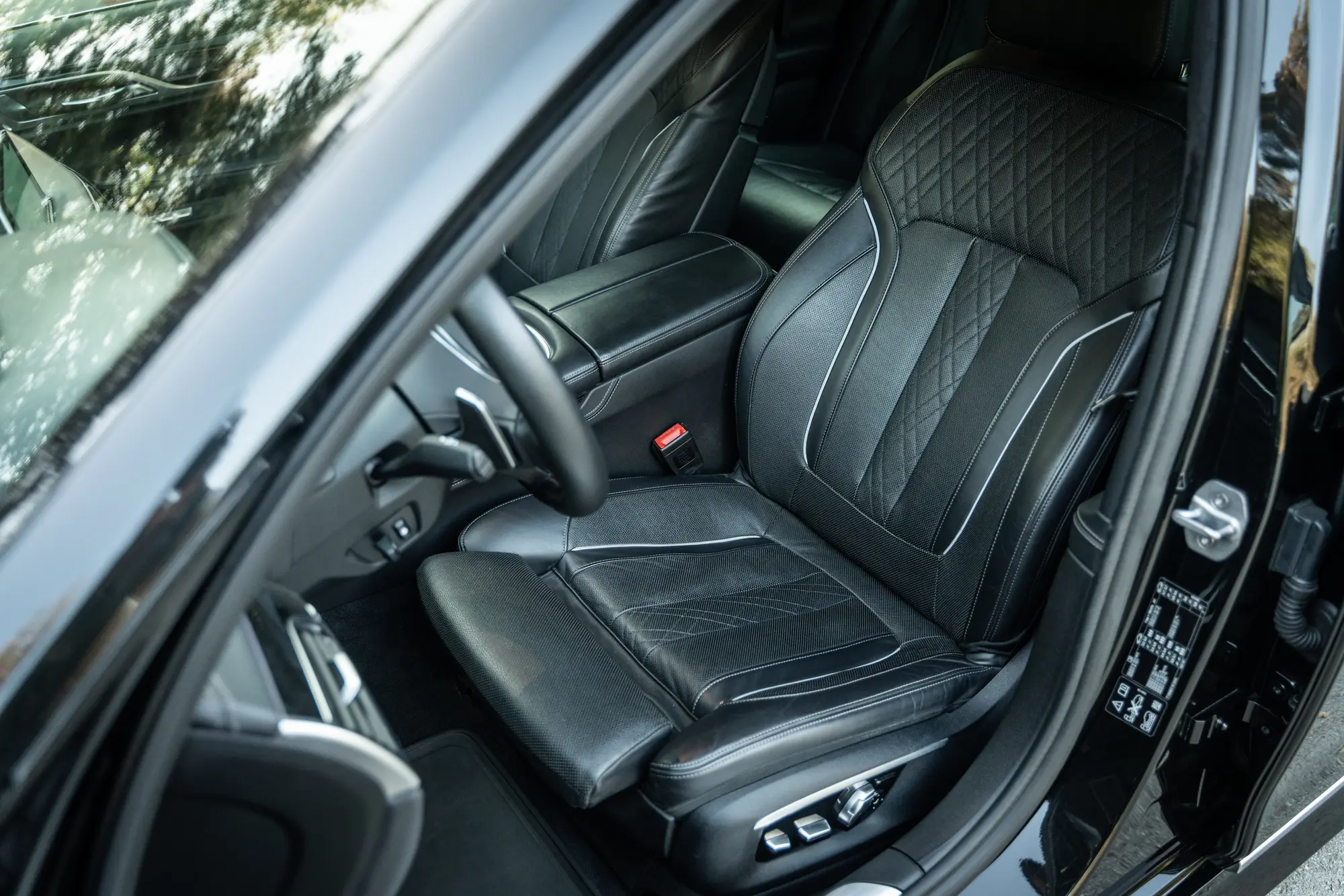 - Center console: leather-wrapped
