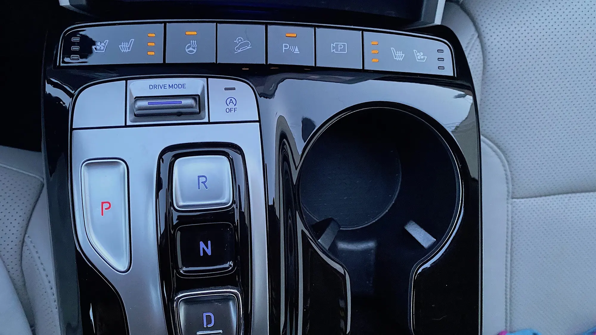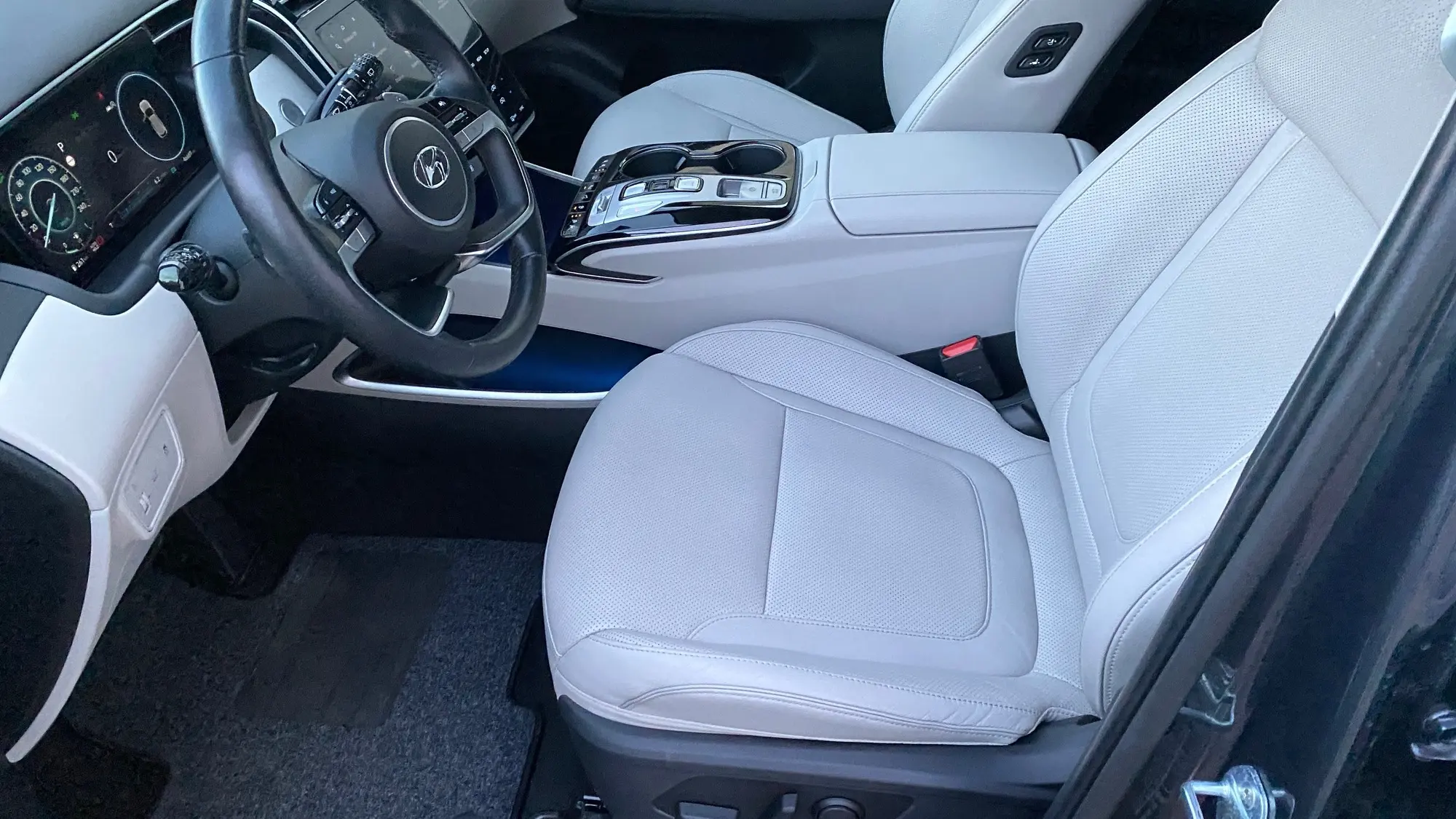 - Center console: leather-wrapped