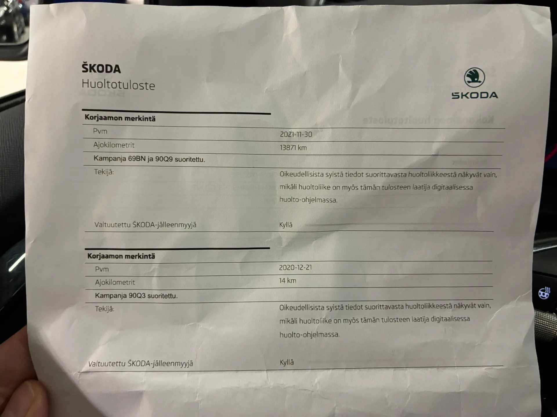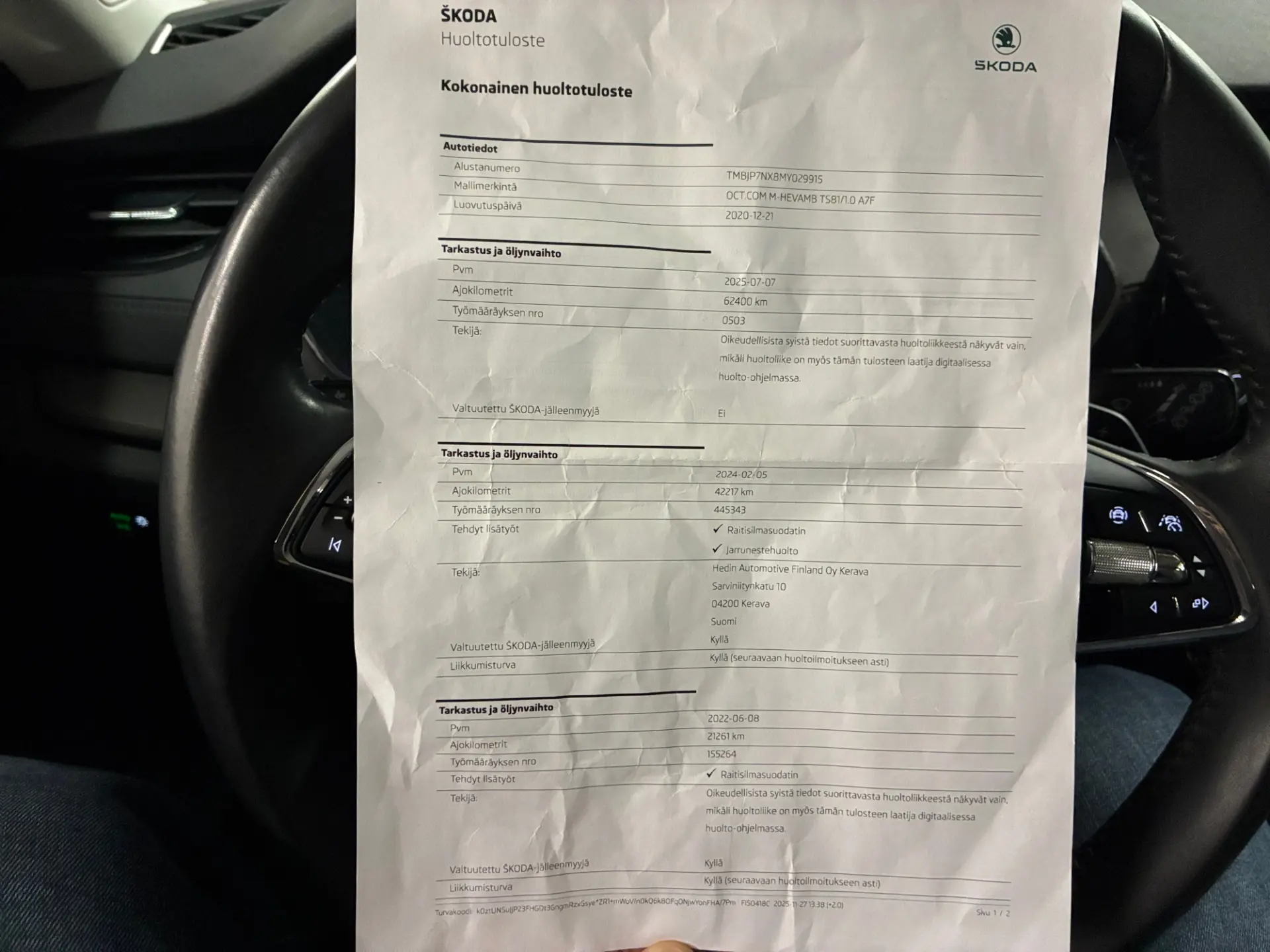 - Viimane hooldus: 7/25, 63tkm