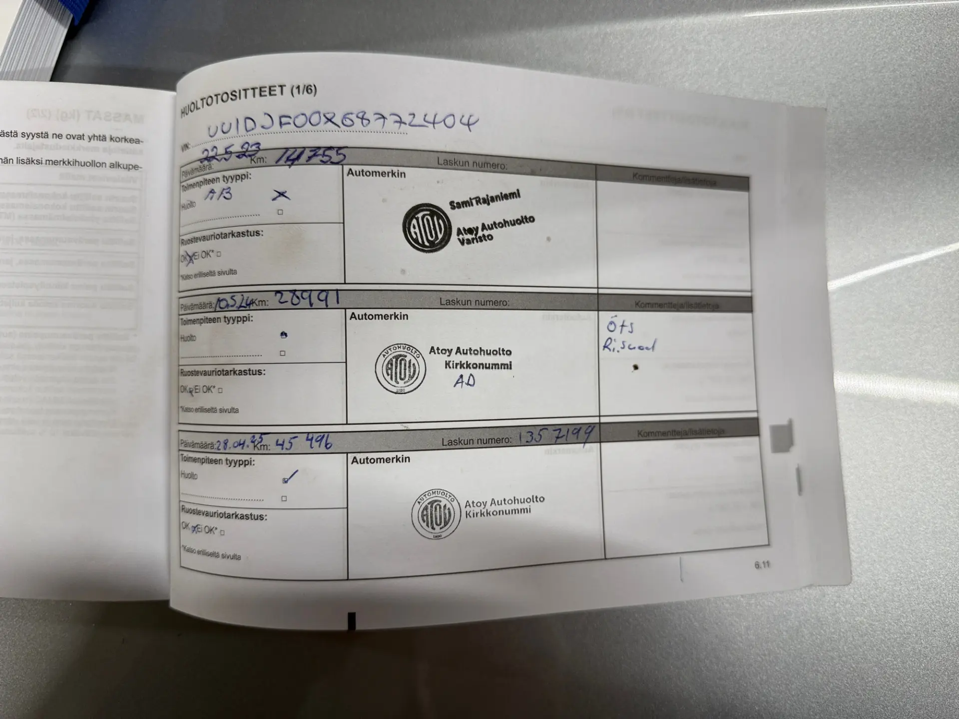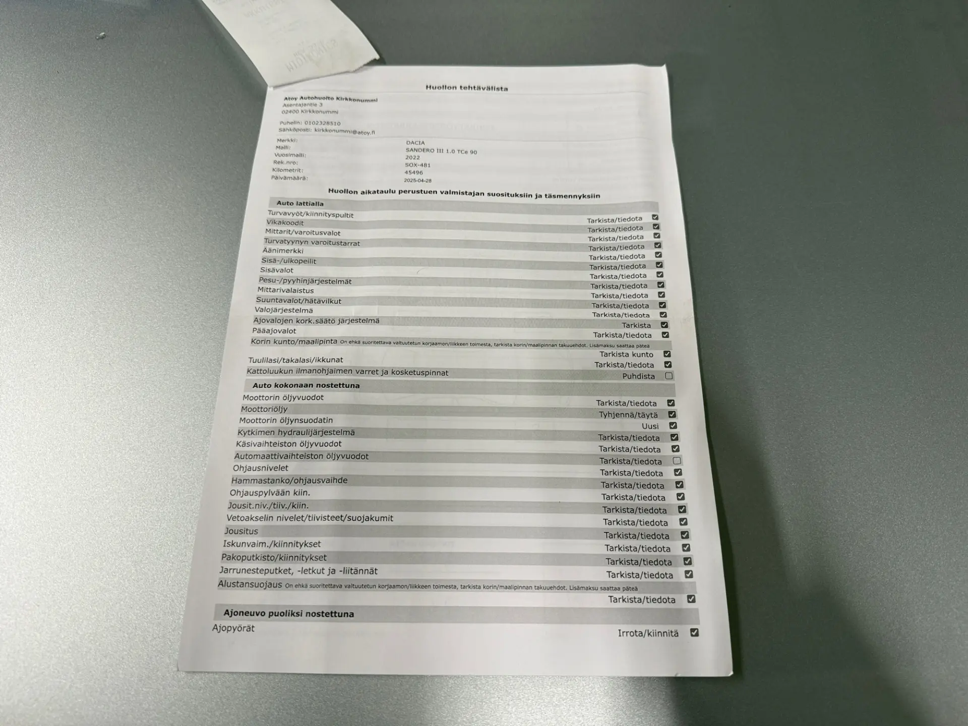 - Viimeisin huolto: 4/25, 46tkm