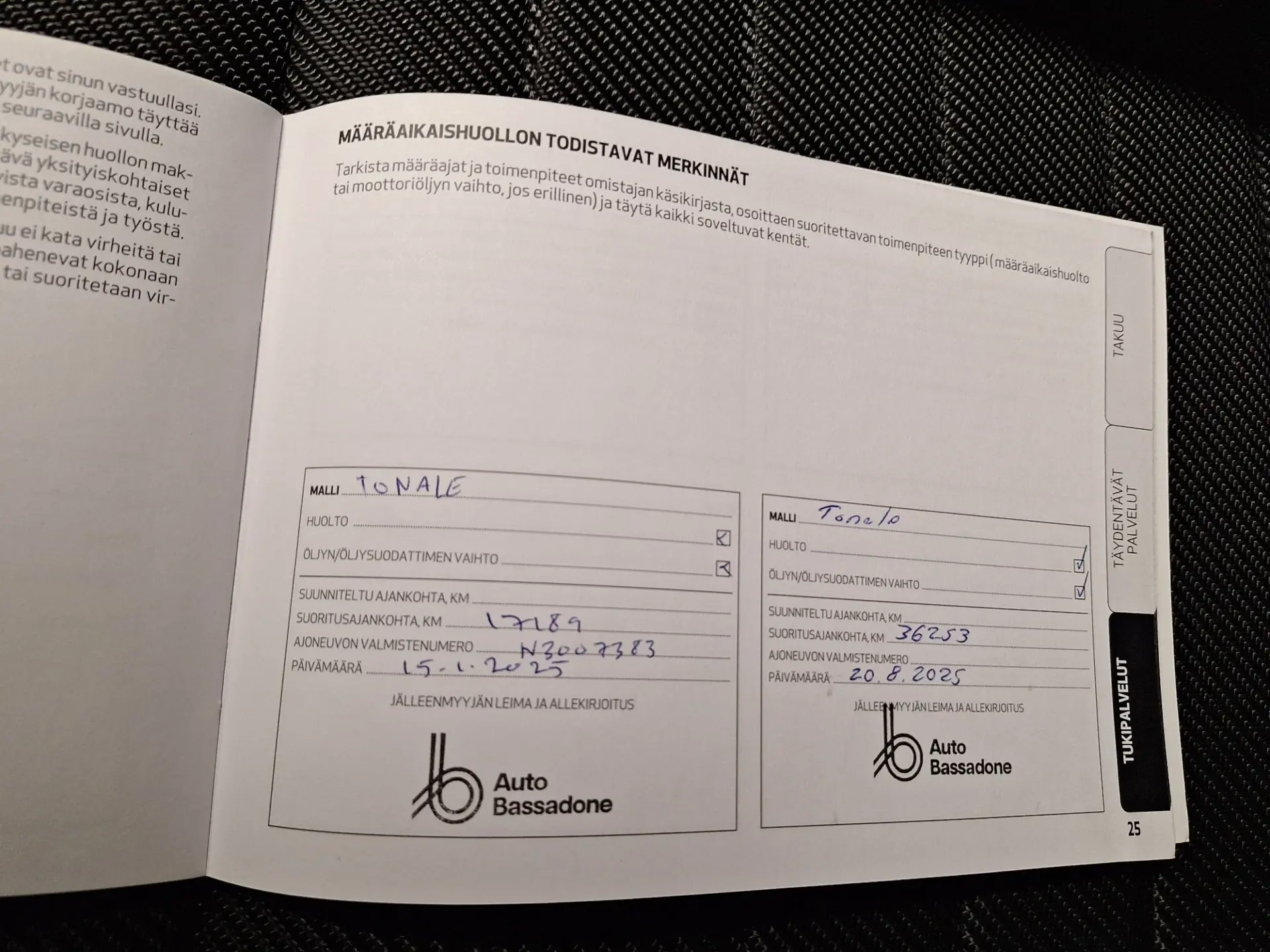 - Viimeisin huolto: 8/25, 37tkm
