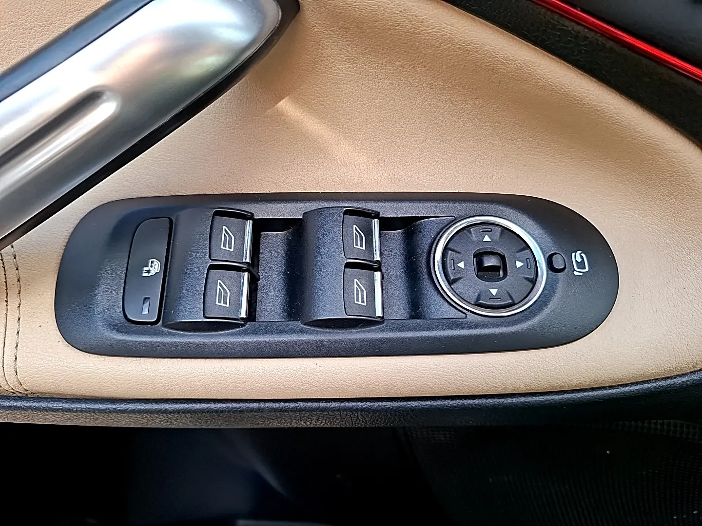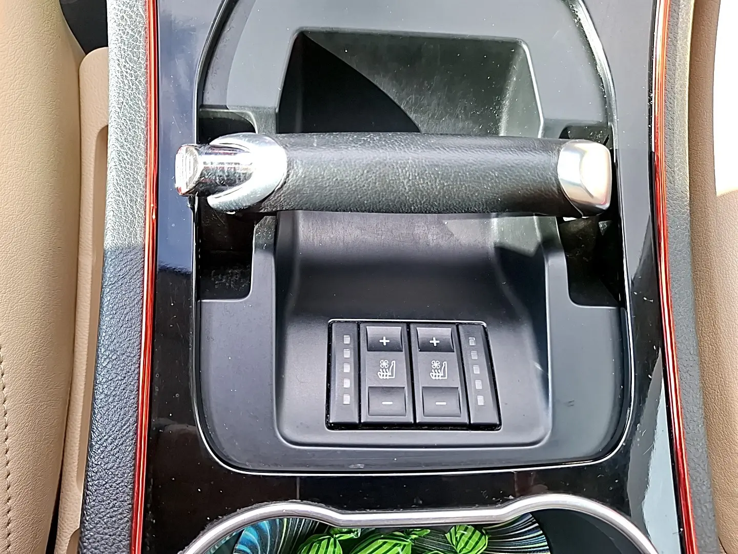 - Center console: leather-wrapped