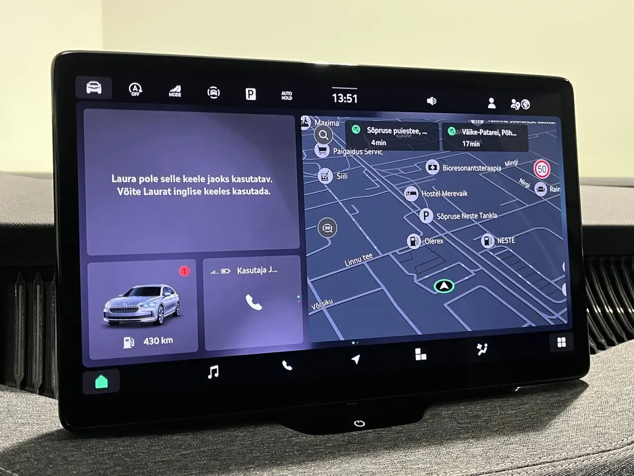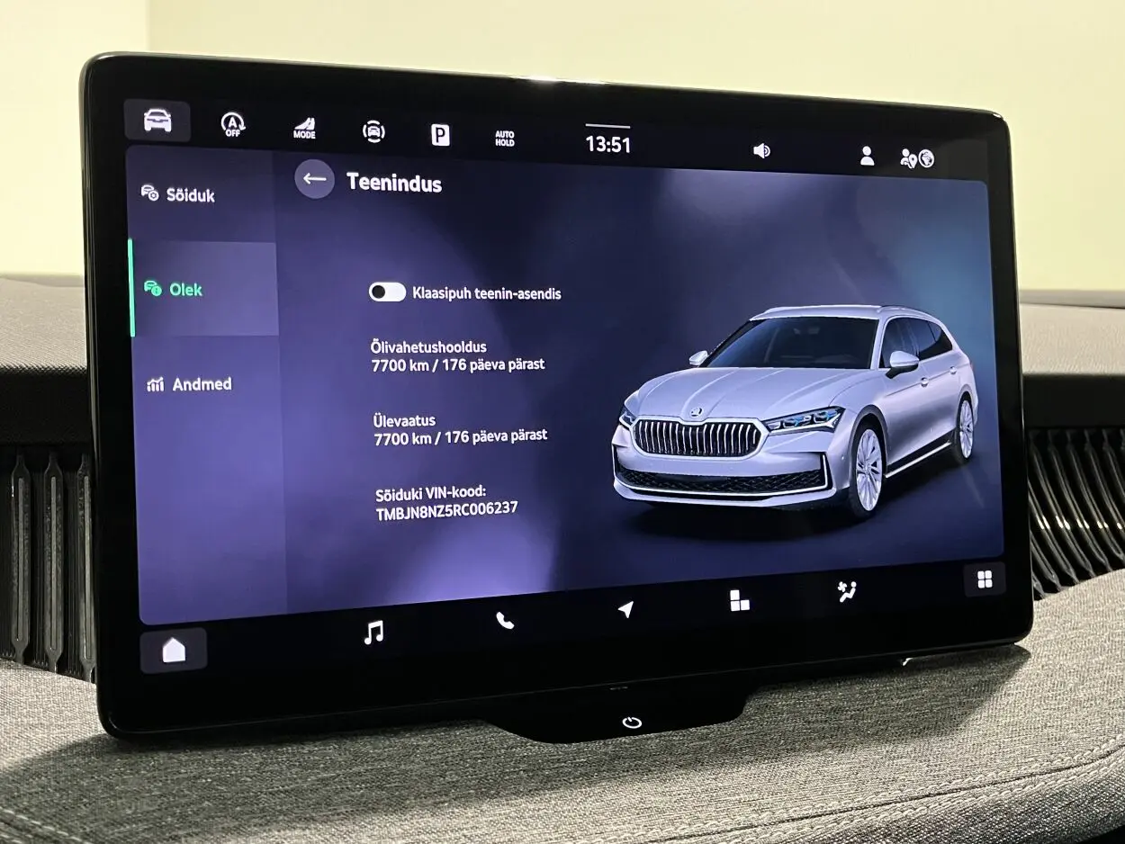 - Škoda Navigation: 13" puutetundlik värviekraan, navigatsioonisüsteem, AM/FM raadio,