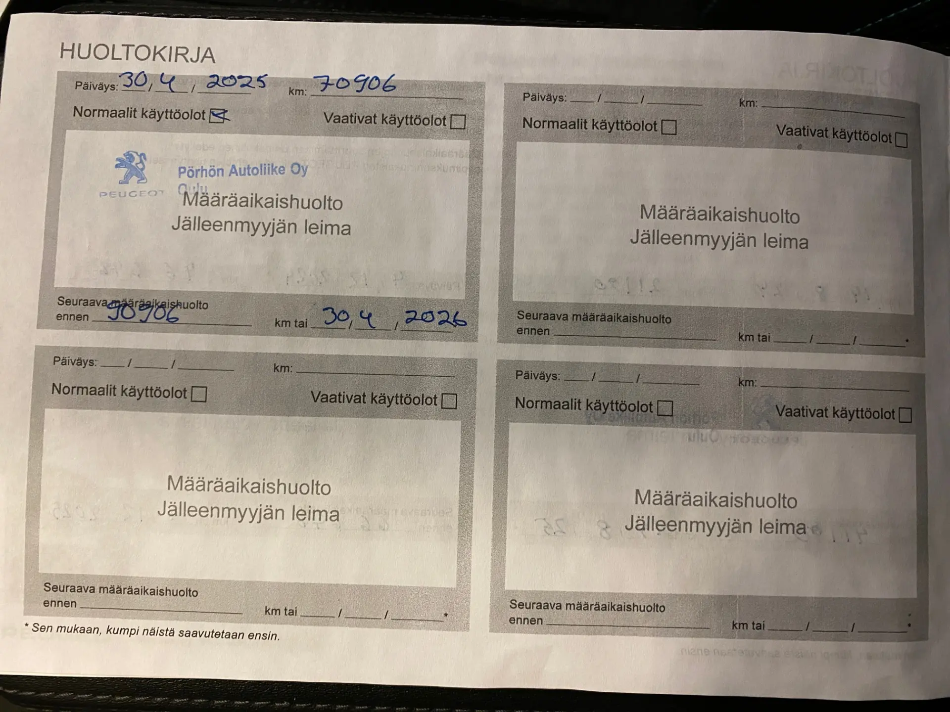100 punkti test, pikk proovisõit, diagnostika, ajaloo kontroll, kontroll tehnoülevaatuspunktis