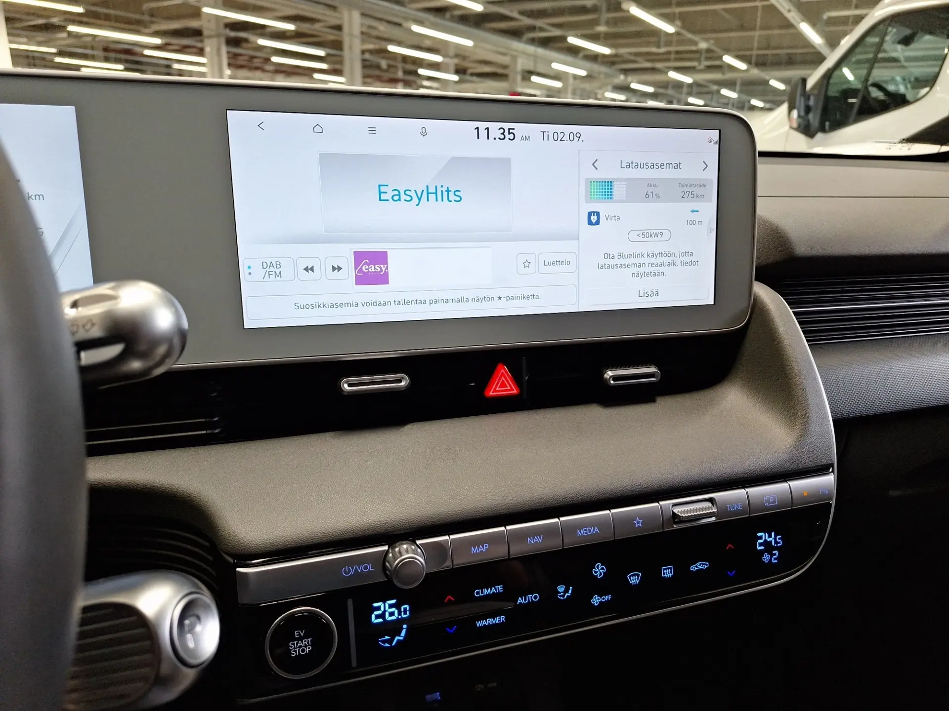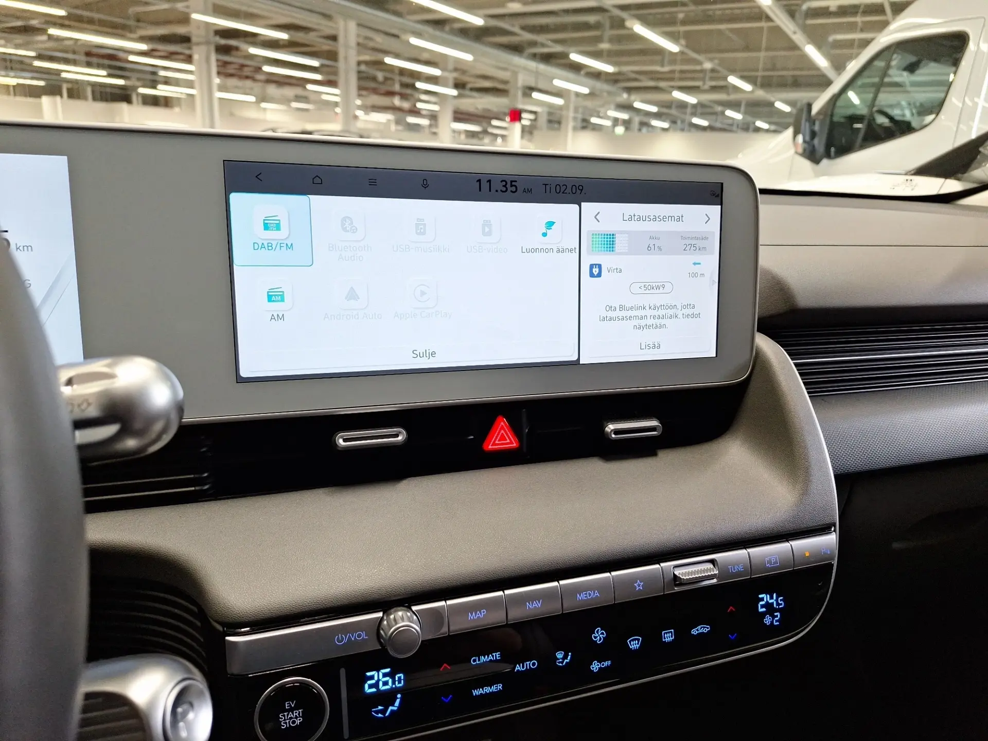 - Bluelink® -telematika (rakendusega juhitav eelsoojendus, laadimishaldus, uste avamine/lukustamine, Live-teenused, marsruudi planeerimine)