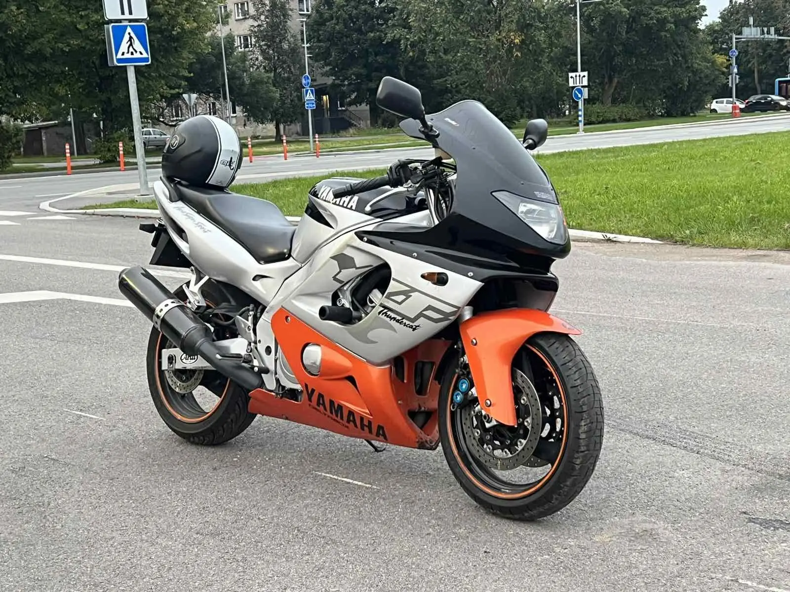 YAMAHA YZF 600R(NB! передачи включаются с усилием.На всех скоростях от 1-ой до 6-ой едет отлично.Мотоцикл на ходу!Заводится и едет.Коробка передач требует внимания и скорей всего ремонта).
