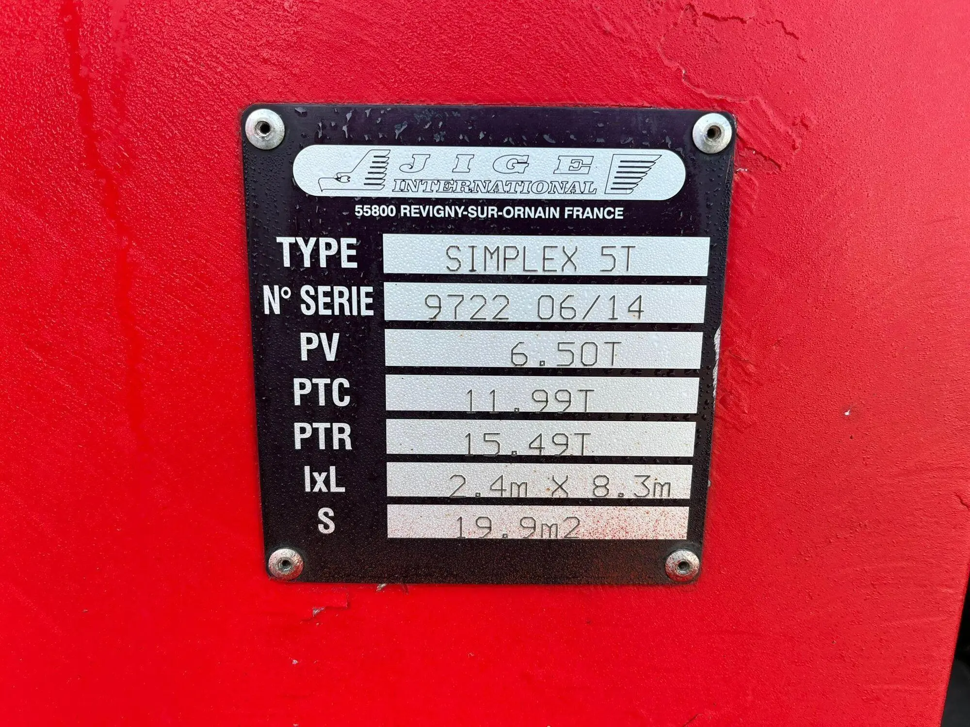 | Varustustase | Jige Simplex 5T / 2x WINCH / platform L=5498 mm | ||||||