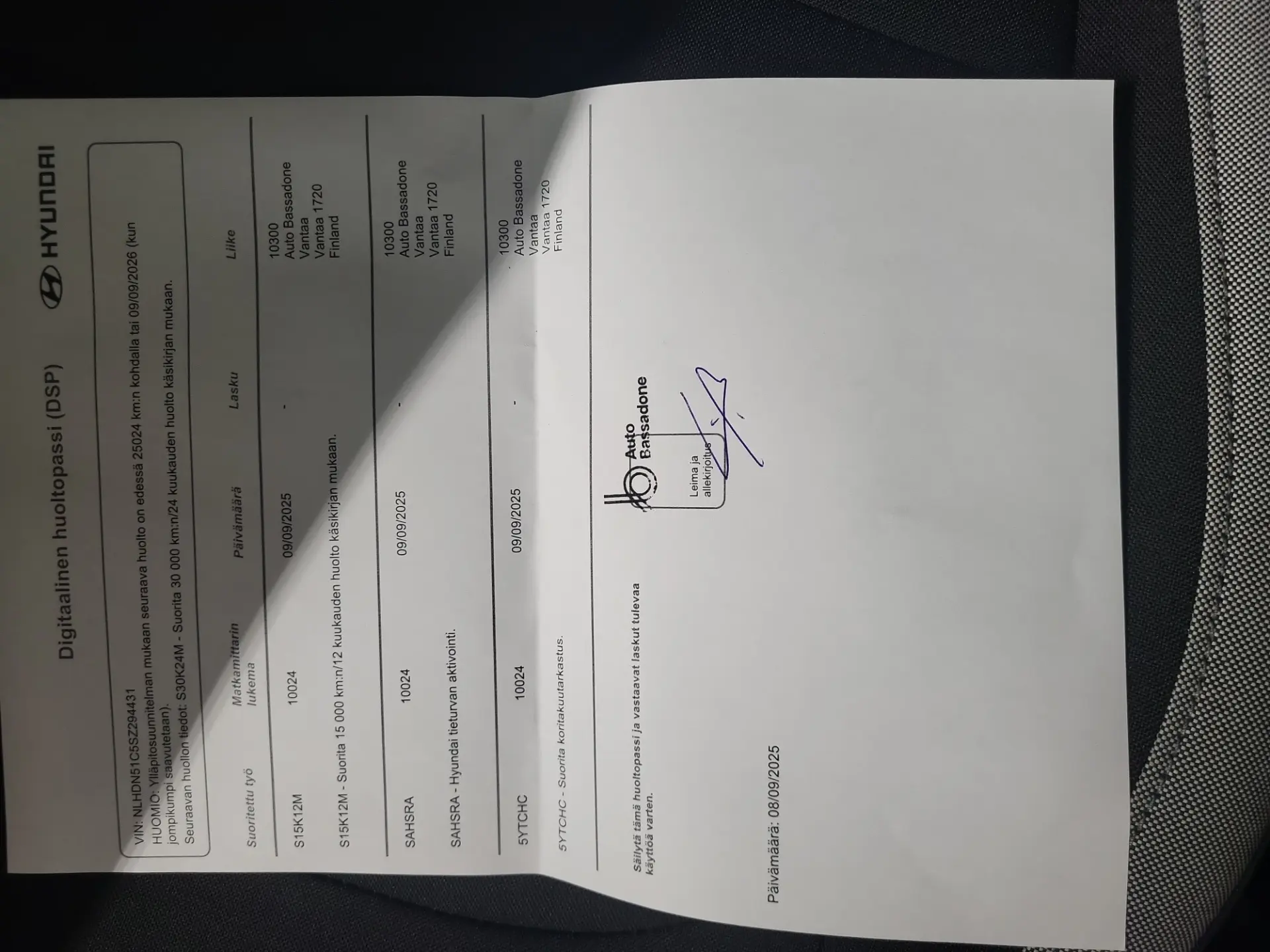 - Viimane hooldus: 9/25, 11 tkm