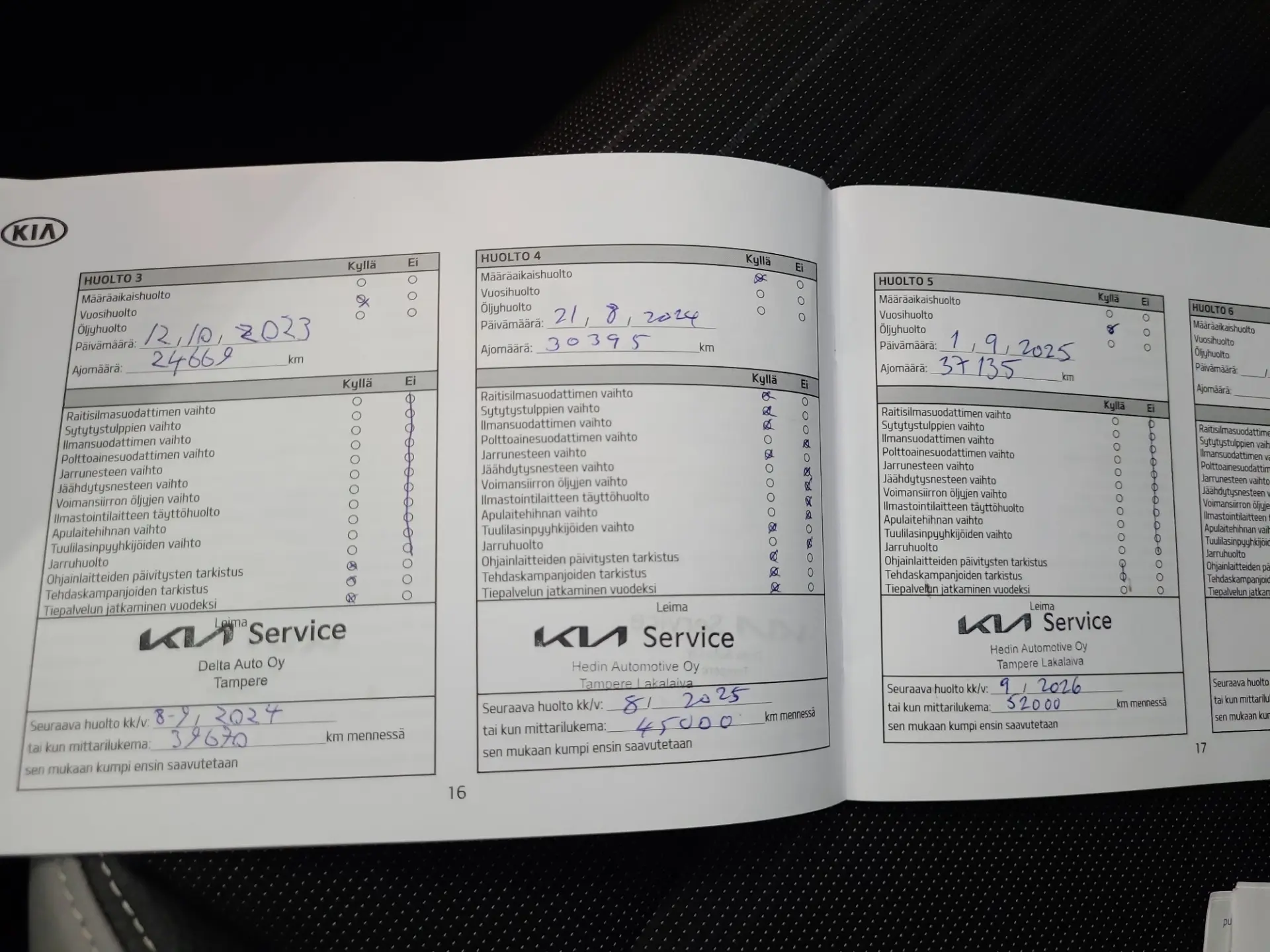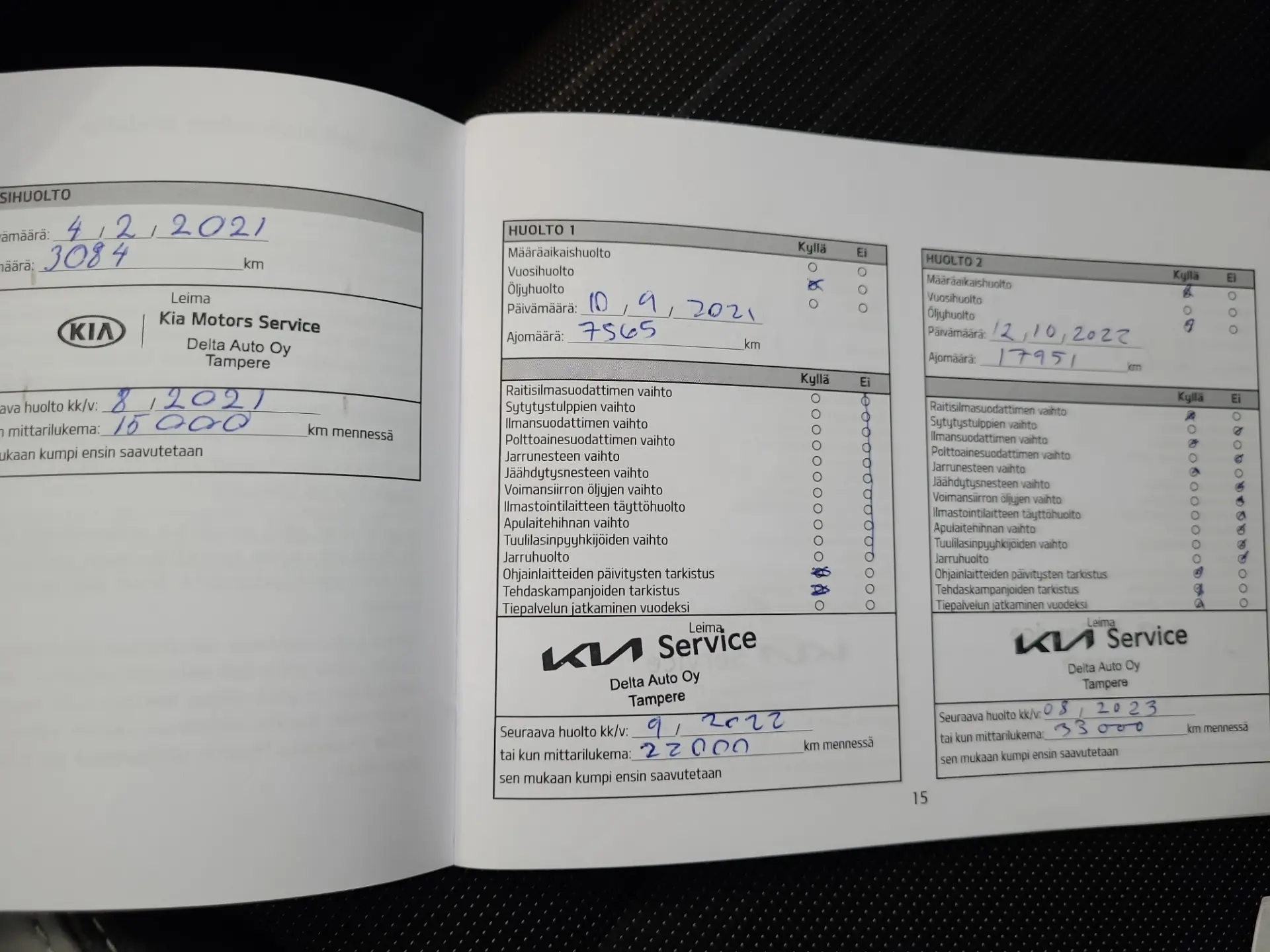 100 punkti test, pikk proovisõit, diagnostika, ajaloo kontroll, kontroll tehnoülevaatuspunktis