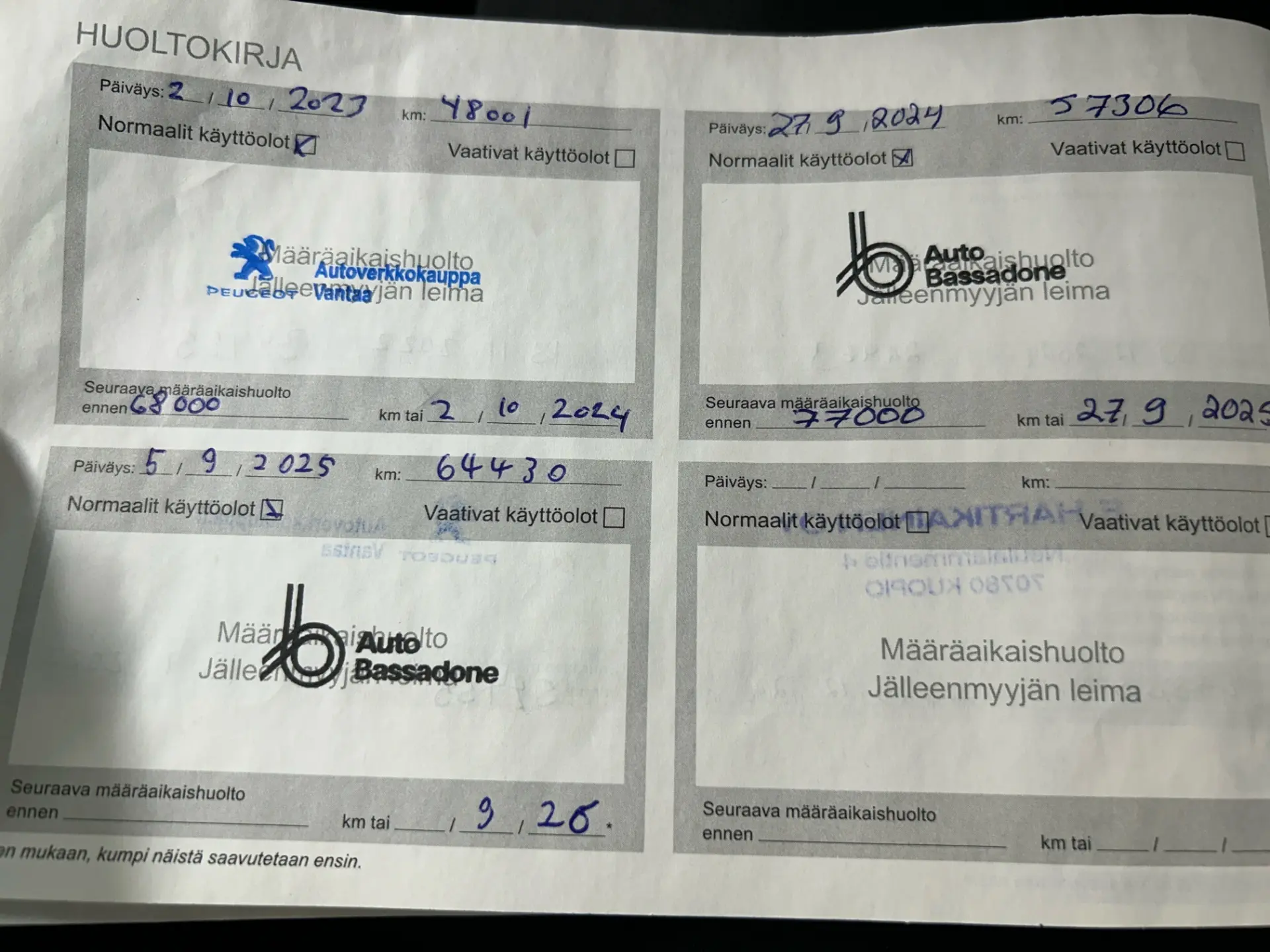 100 punkti test, pikk proovisõit, diagnostika, ajaloo kontroll, kontroll tehnoülevaatuspunktis