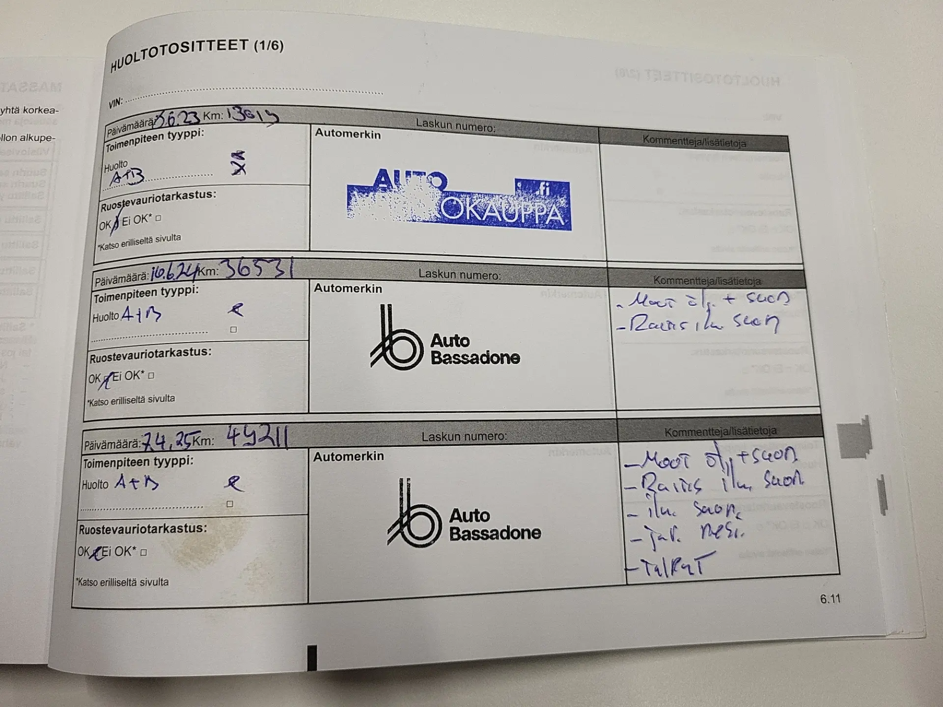100 punkti test, pikk proovisõit, diagnostika, ajaloo kontroll, kontroll tehnoülevaatuspunktis