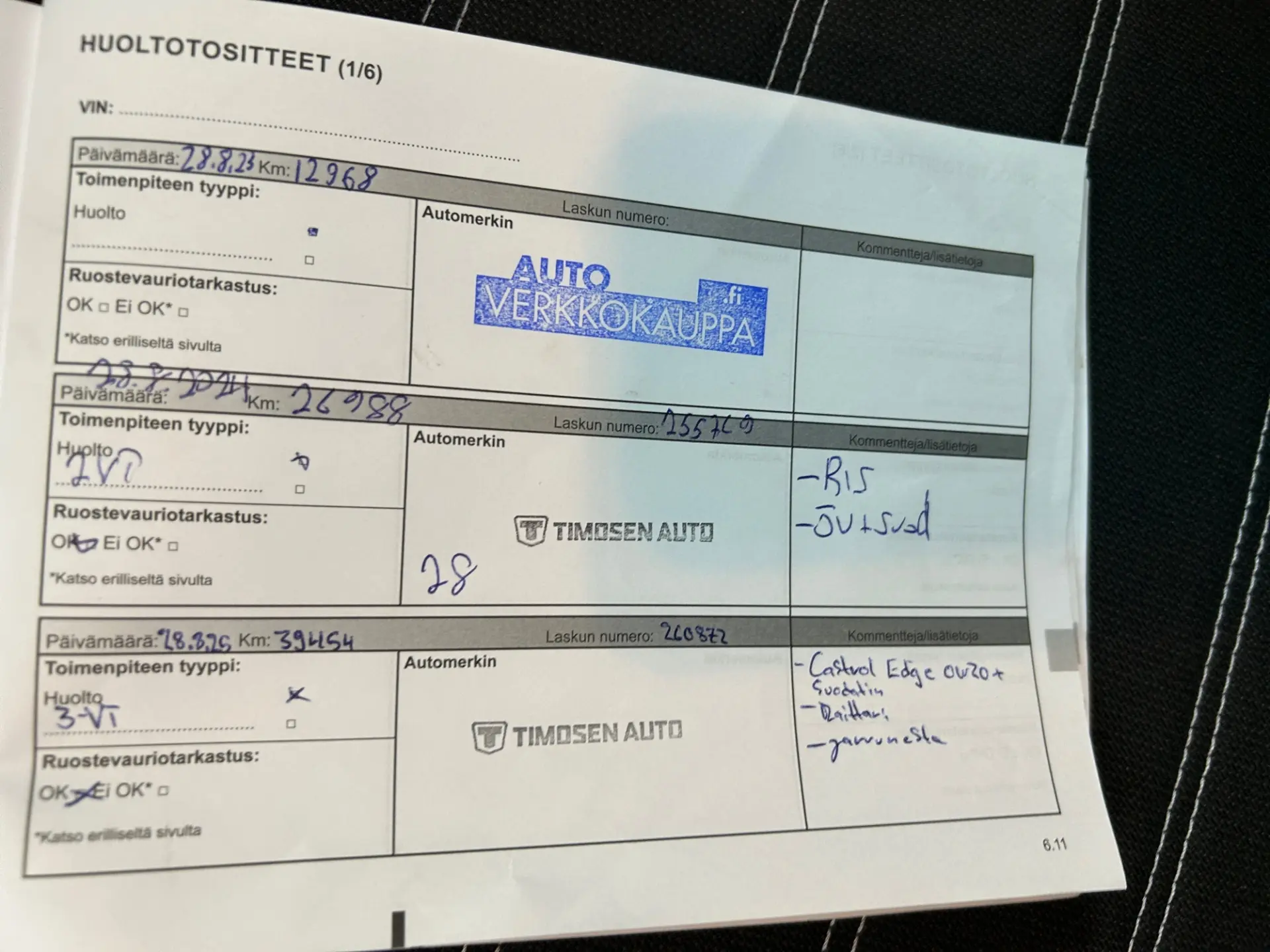 100 punkti test, pikk proovisõit, diagnostika, ajaloo kontroll, kontroll tehnoülevaatuspunktis