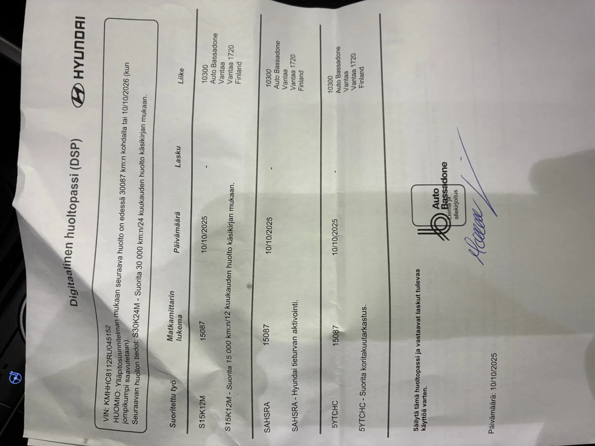 - Viimane hooldus: 10/25 16 000 km