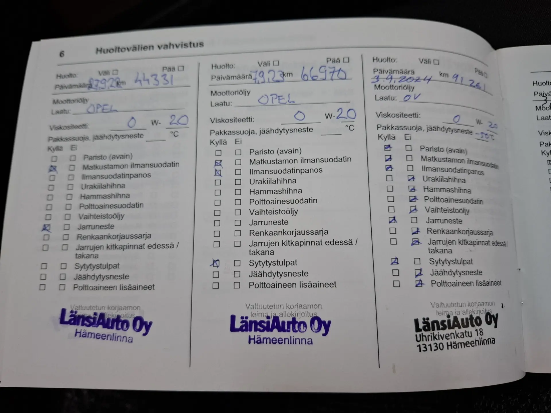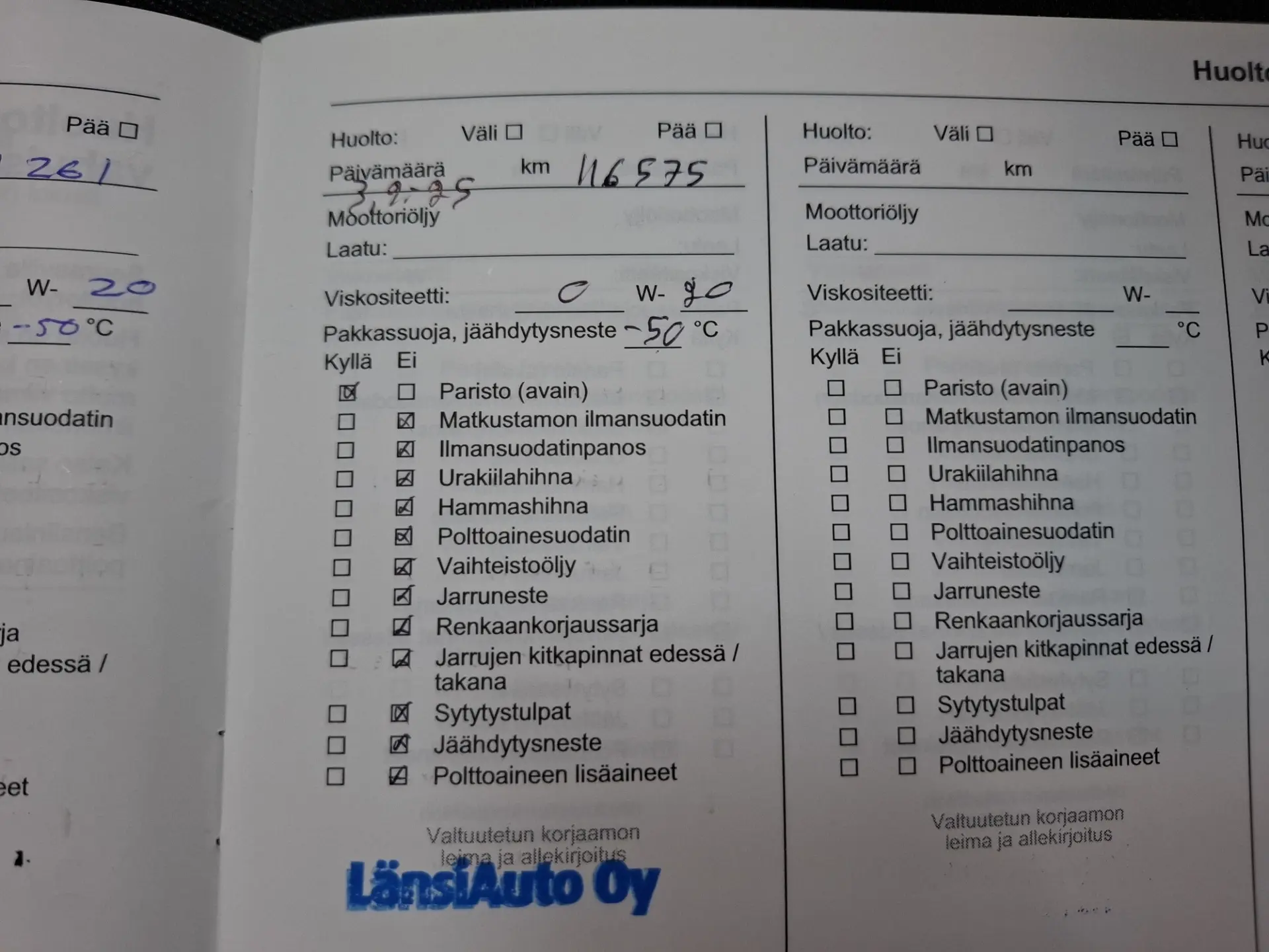 100 punkti test, pikk proovisõit, diagnostika, ajaloo kontroll, kontroll tehnoülevaatuspunktis