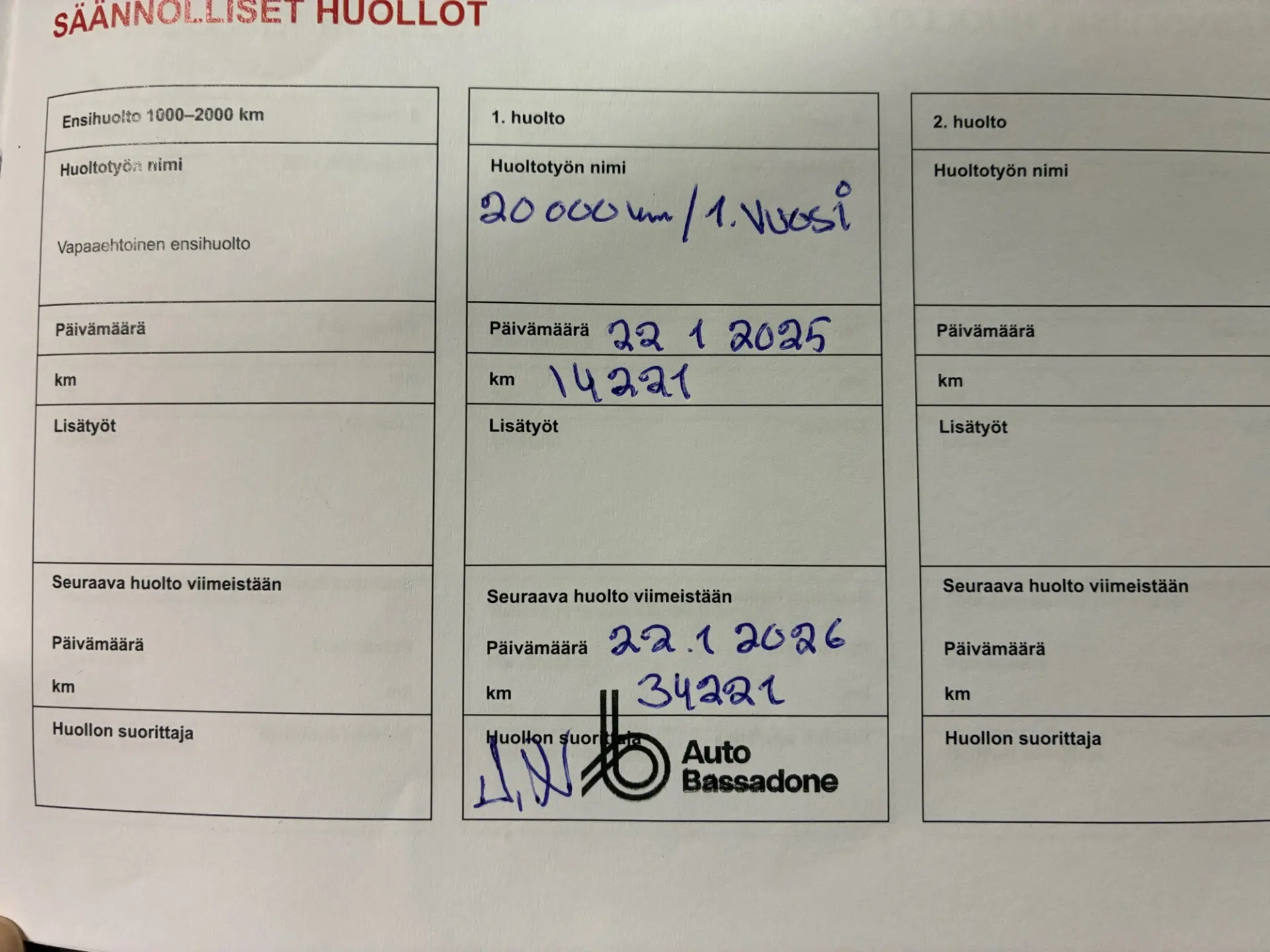 - Viimeisin huolto: 1/25, 15tkm
