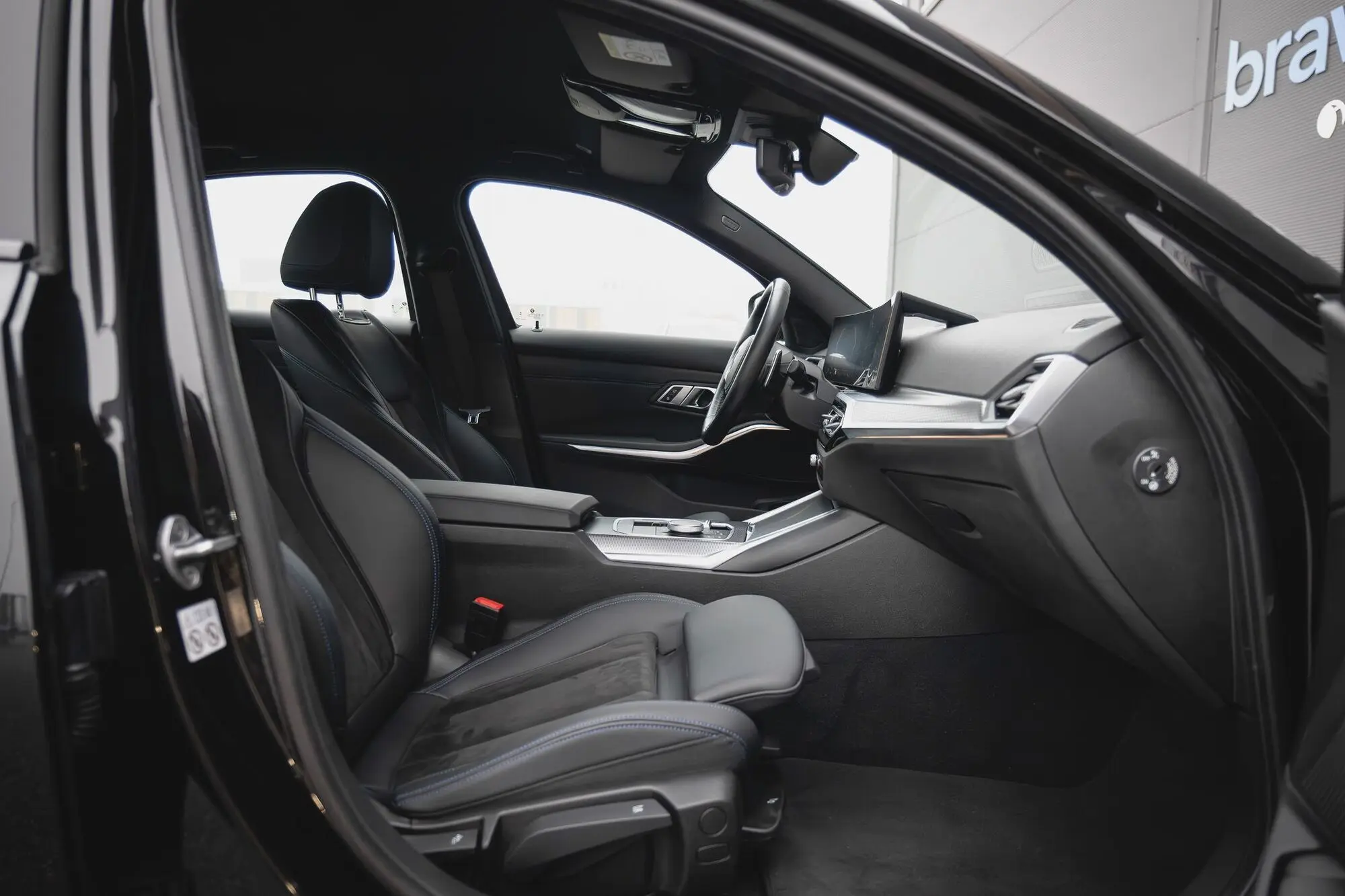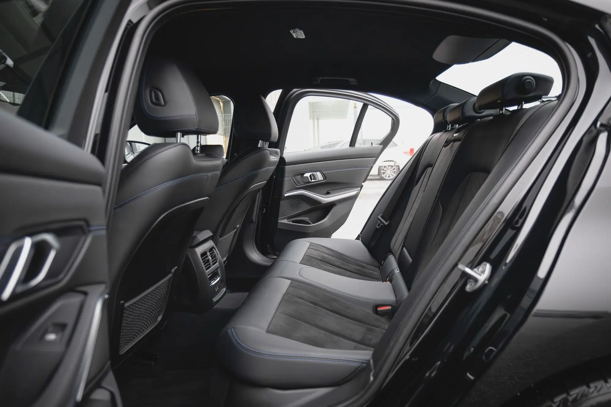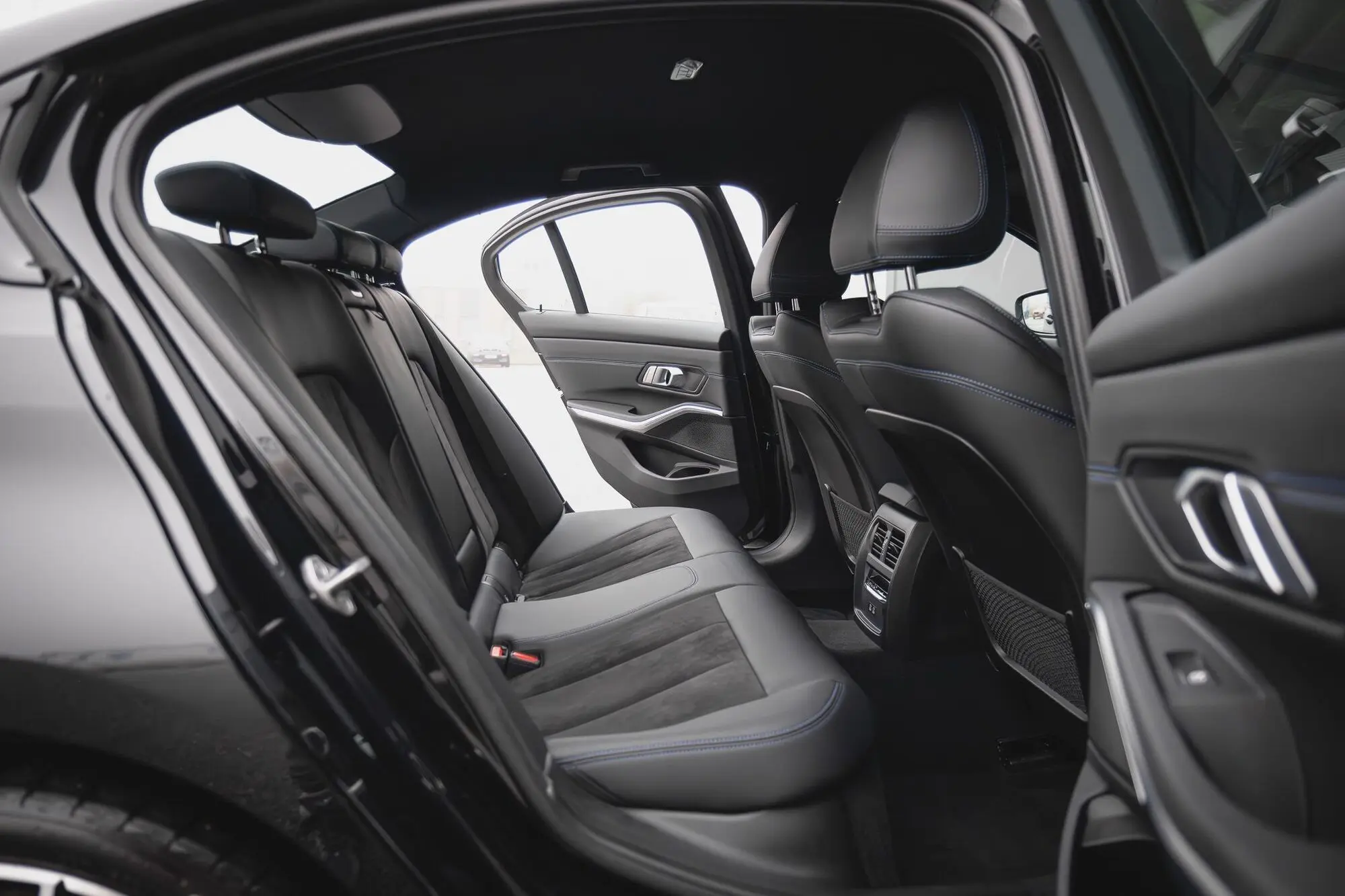 - Alcantara- / Sensatec lederiinpolster must / sinise tikandõmblusega