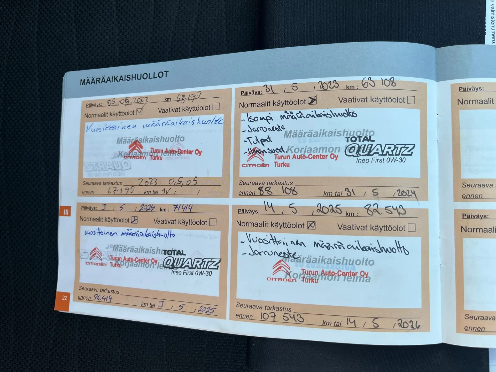 100 punkti test, pikk proovisõit, diagnostika, ajaloo kontroll, kontroll tehnoülevaatuspunktis