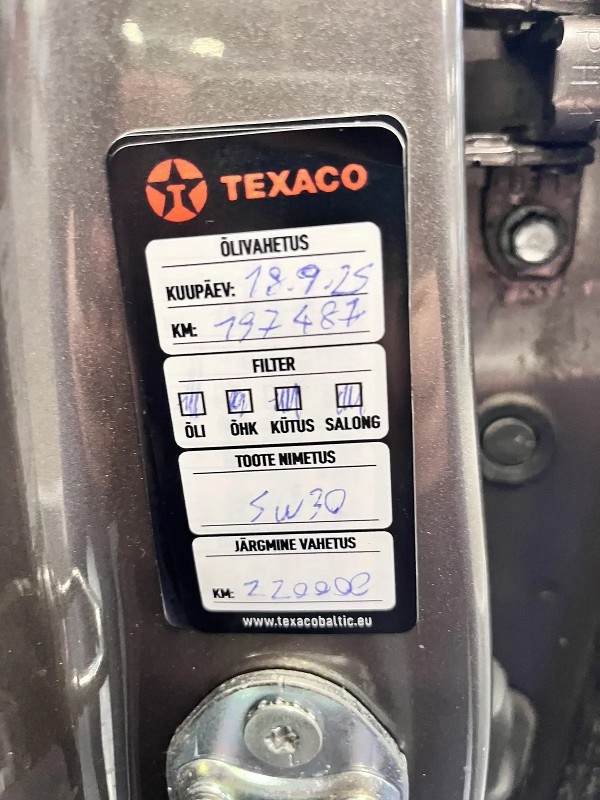 - Viimane hooldus 09.2025 läbisõidul 197 487 kilomeetrit