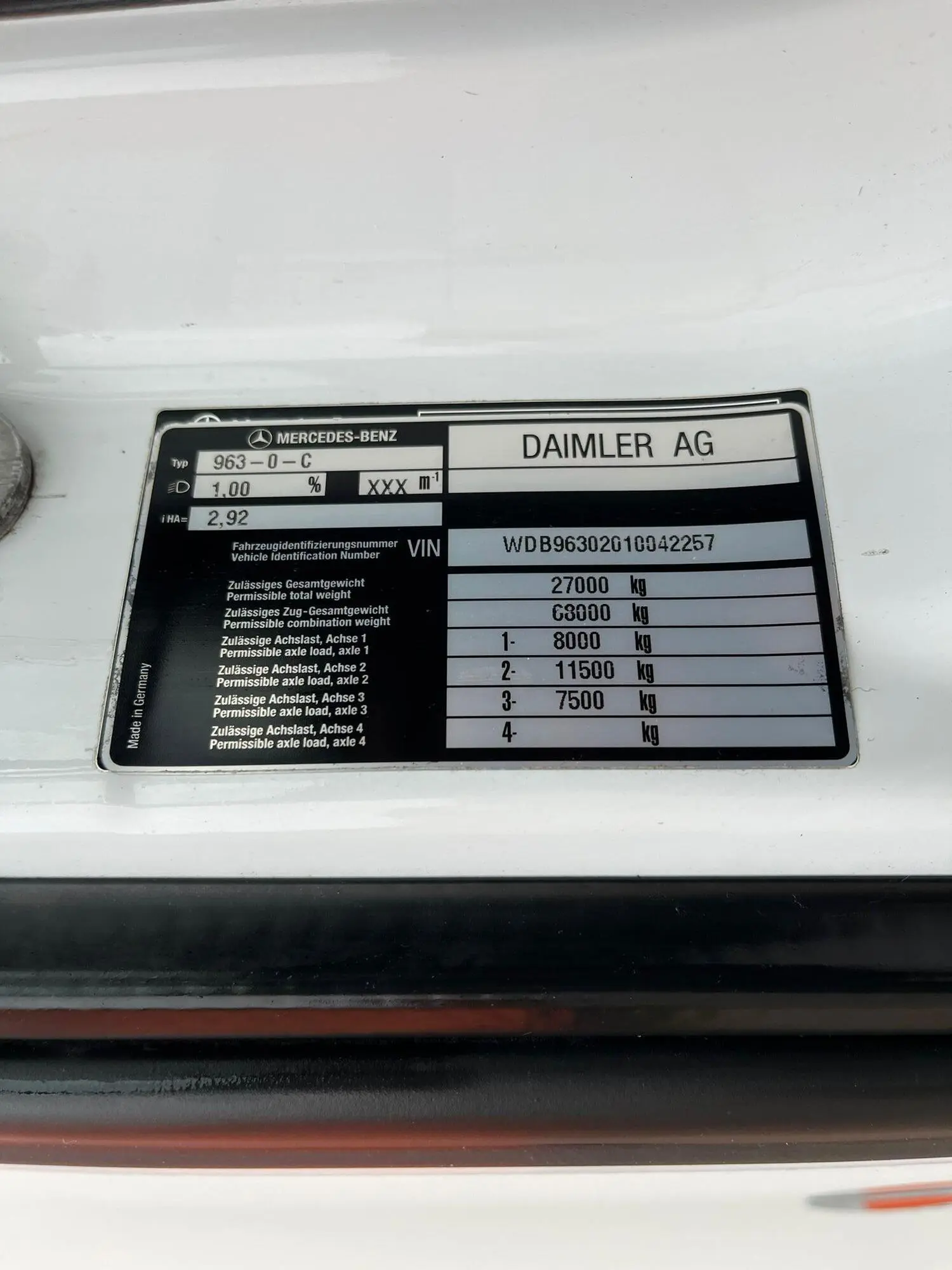 | VIN | WDB96302010042257 | ||||||