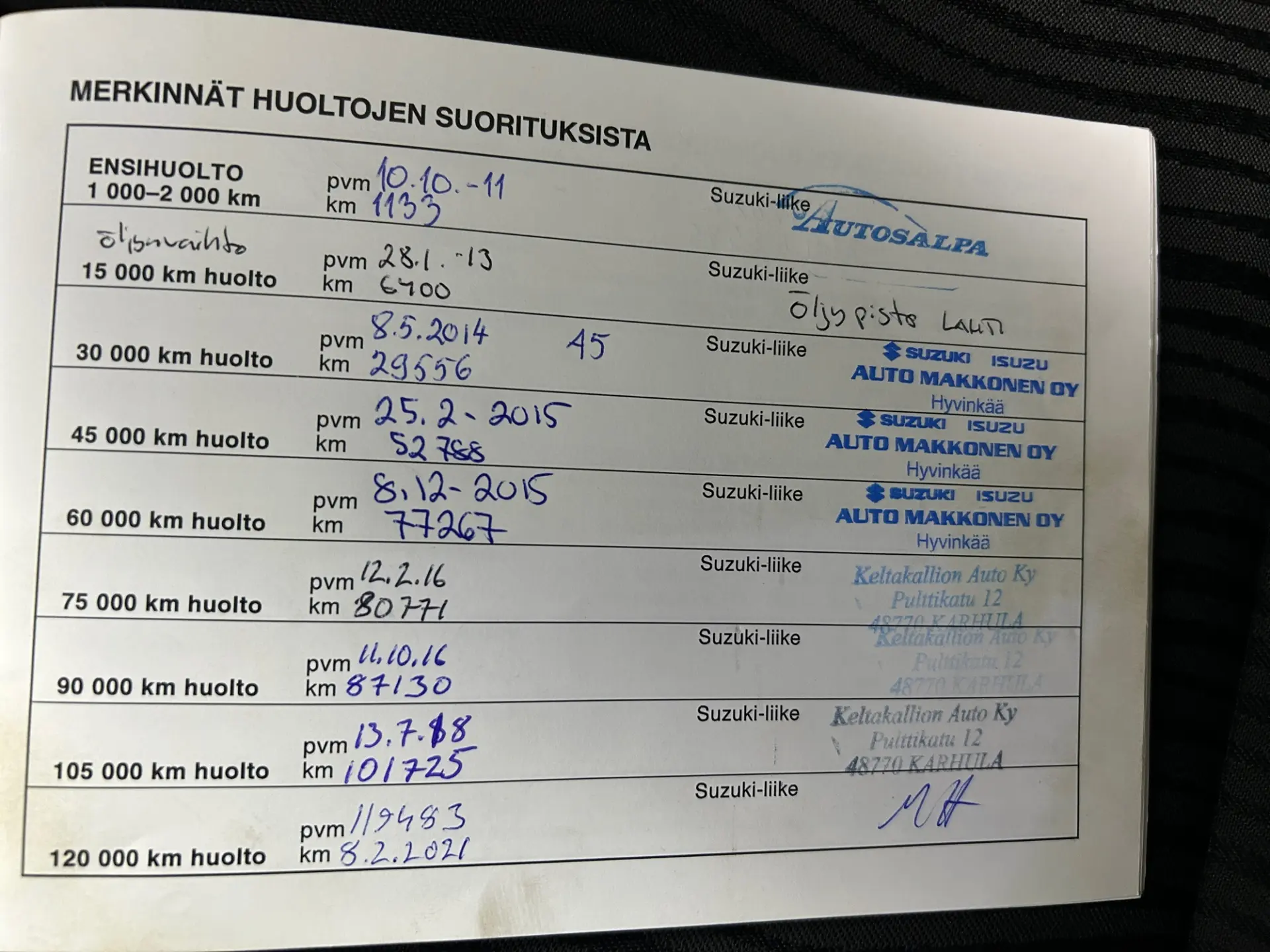 - Viimeisin huolto: 148000km, 11/2025