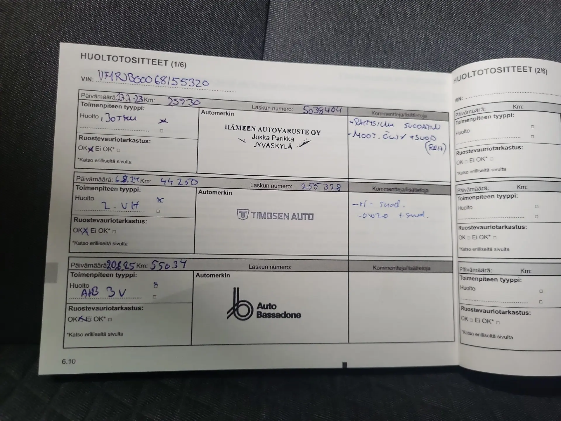 100 punkti test, pikk proovisõit, diagnostika, ajaloo kontroll, kontroll tehnoülevaatuspunktis