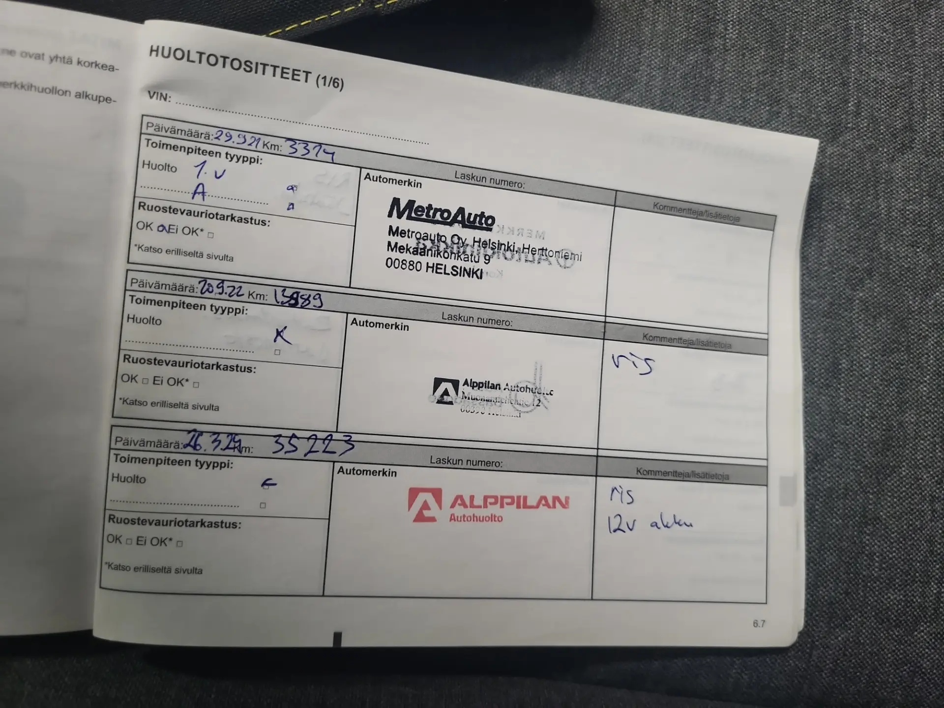 - Viimeisin huolto: 10/25, 65tkm