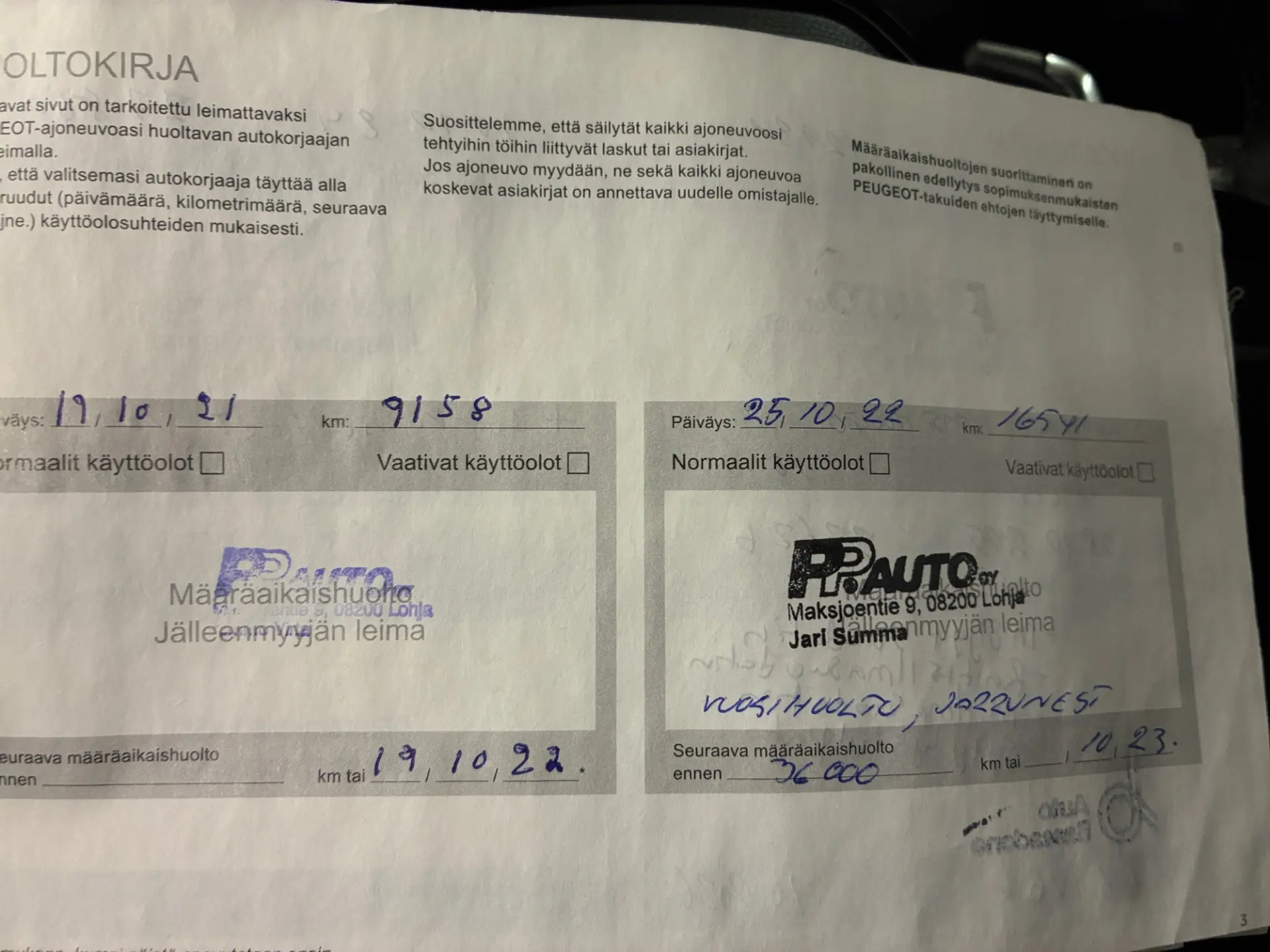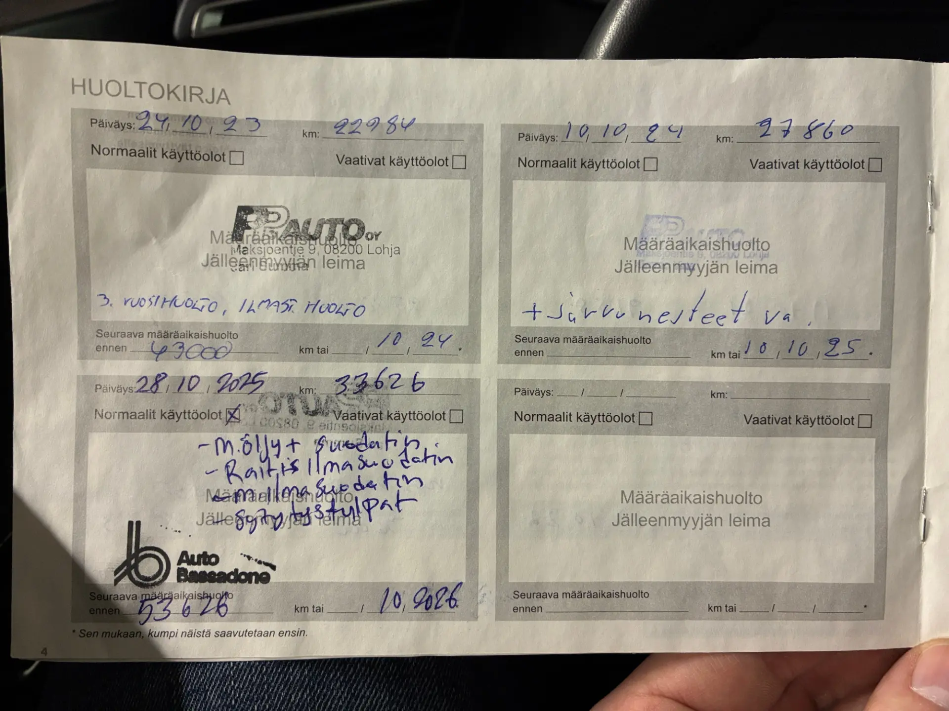 - Viimeisin huolto: 10/25, 34tkm