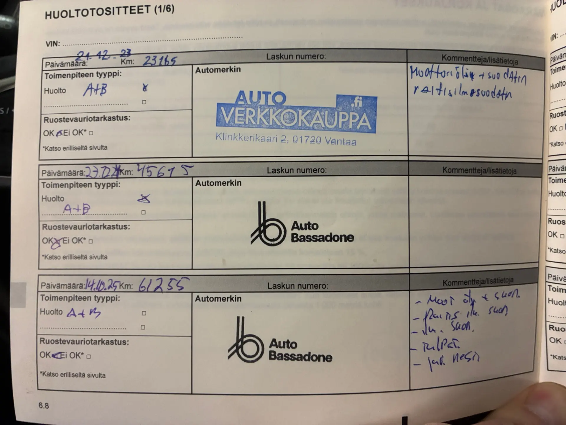- Viimeisin huolto: 10/25, 62tkm