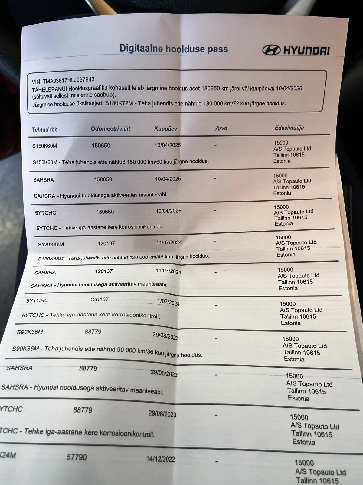 - Viimane hooldus 04.2025 läbisõidul 150 650 kilomeetrit