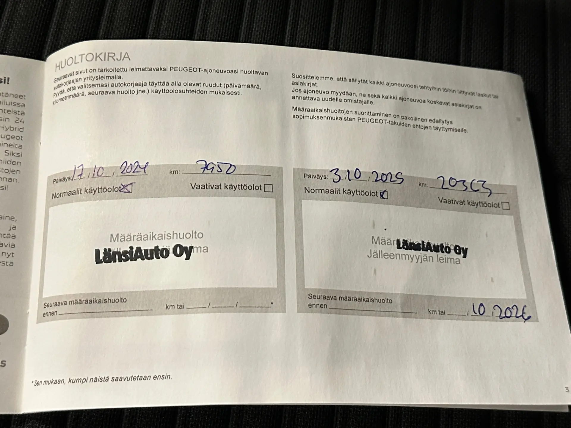 - Viimeisin huolto: 10/25, 20tkm