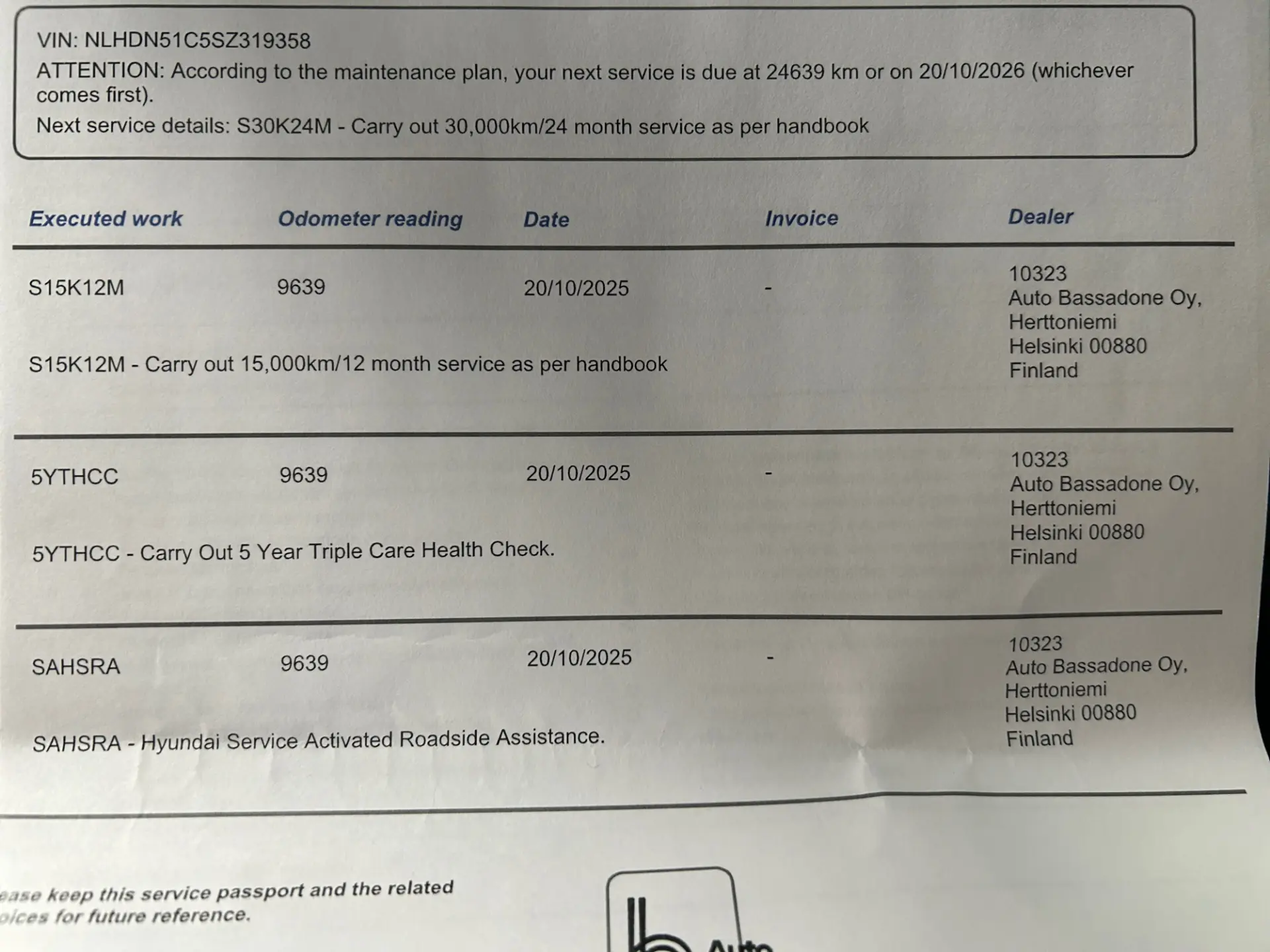 - Viimeisin huolto: 9600km, 10/2025