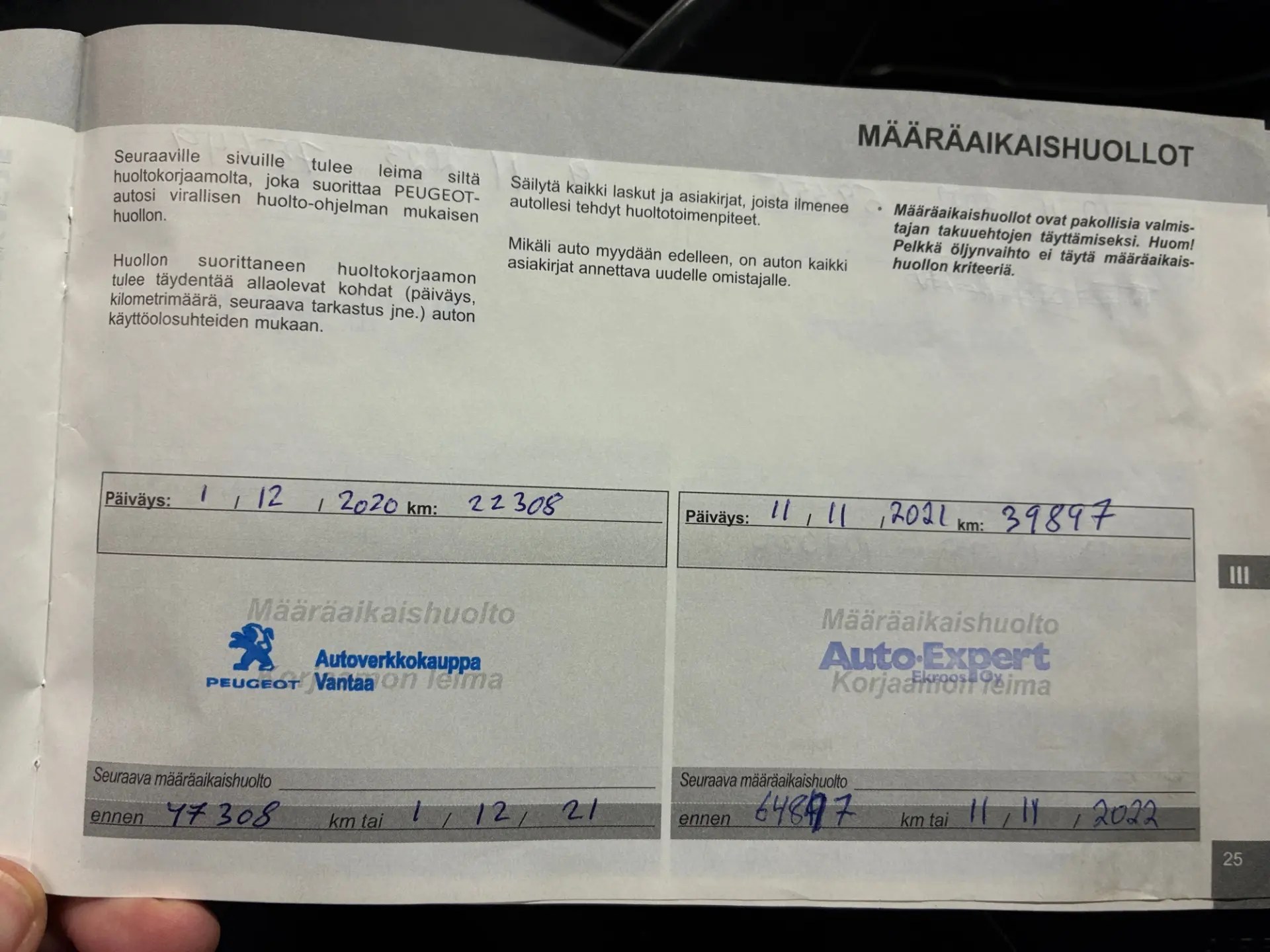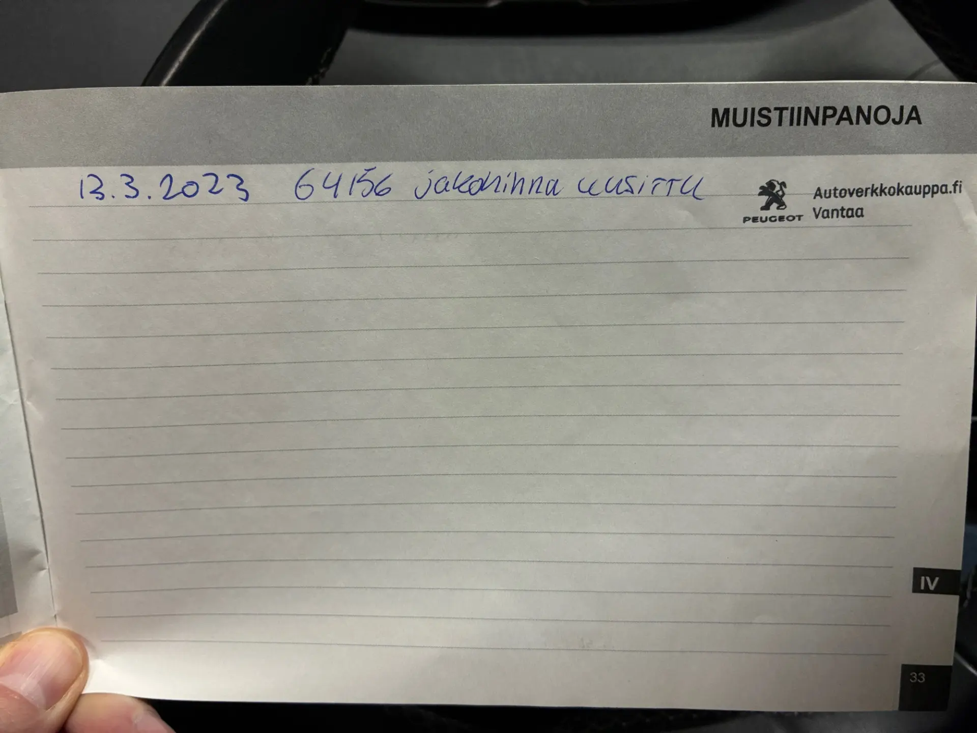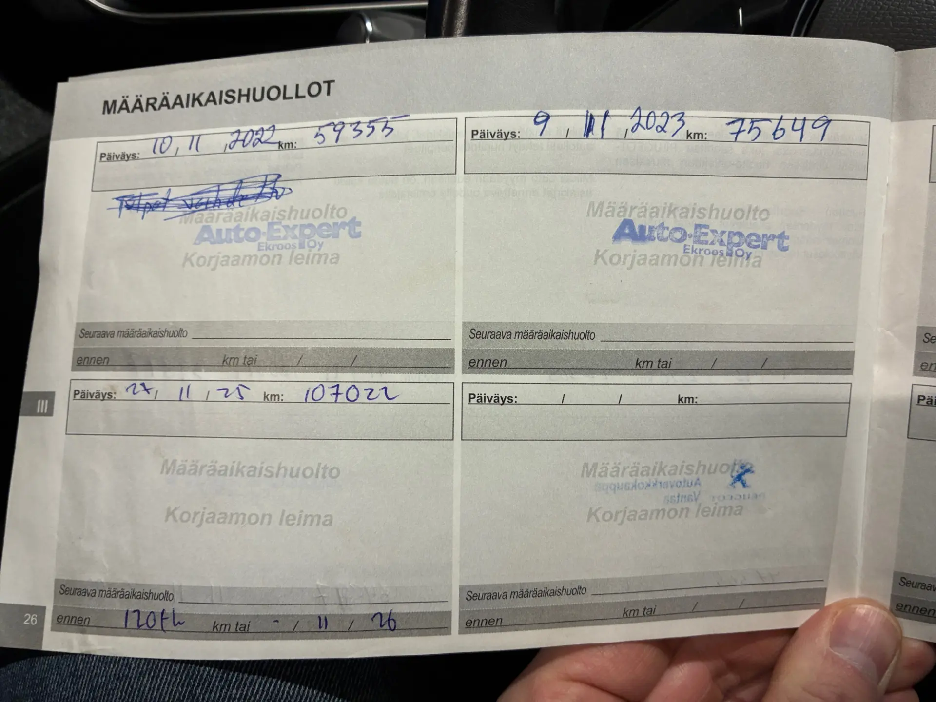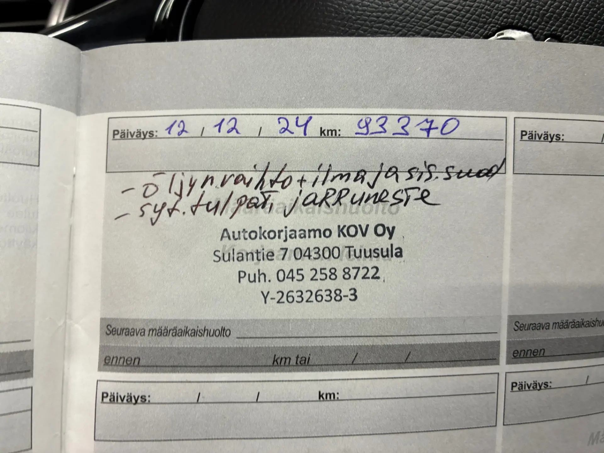 - Viimeisin huolto: 11/25, 108tkm