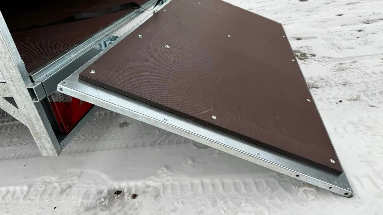 - + Kallutuskruvi haagise esiosas mugavamaks pealelaadimiseks
