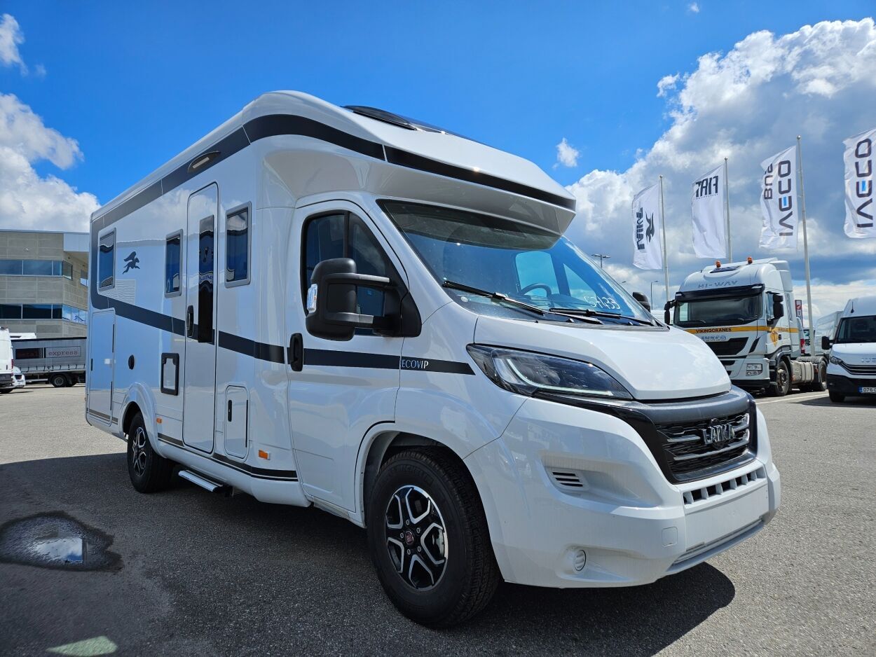 - Comfort Pack ECOVIP Low-Profiles: Parkimiskaamera ettevalmistus, Vannitoa aken (28), Plisseeritud kabiini sisekardinad (tuuleklaasile ja küljele aknad), Puidust jalalaud dušialuse jaoks, Kabiini vaip