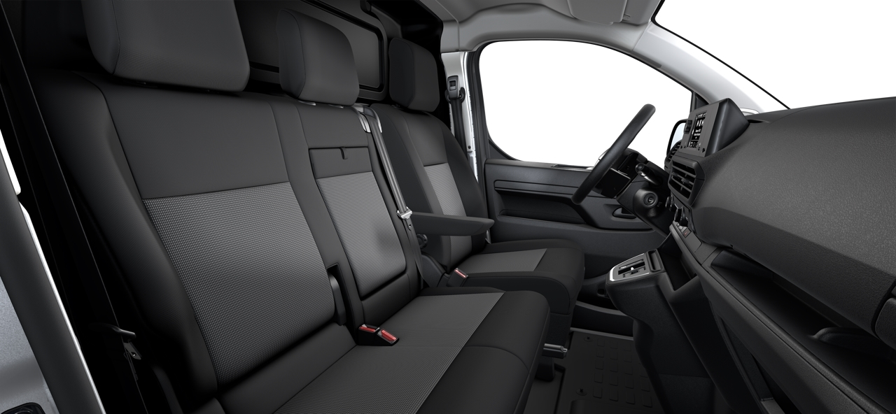 - Käetoega juhiiste. Istme pikisuunaline, seljatoe kaldenurga, istme kõrguse ja nimmetoe reguleerimine. Moduwork kahekohaline kõrvaliste: ülestõstetav äärmine iste koos avaga kaubaruumi vaheseinas pikkade esemete transportimiseks ja A4 kirjutuslaud keskmise istme seljatoes. Panipaik keskmise istme all