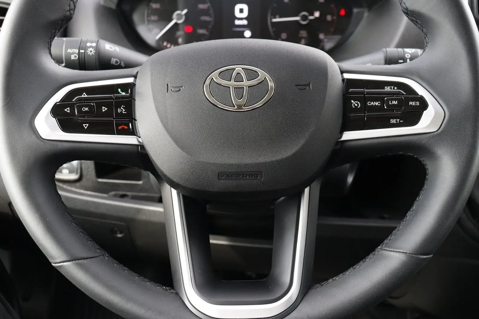 - Steering wheel: leather-wrapped