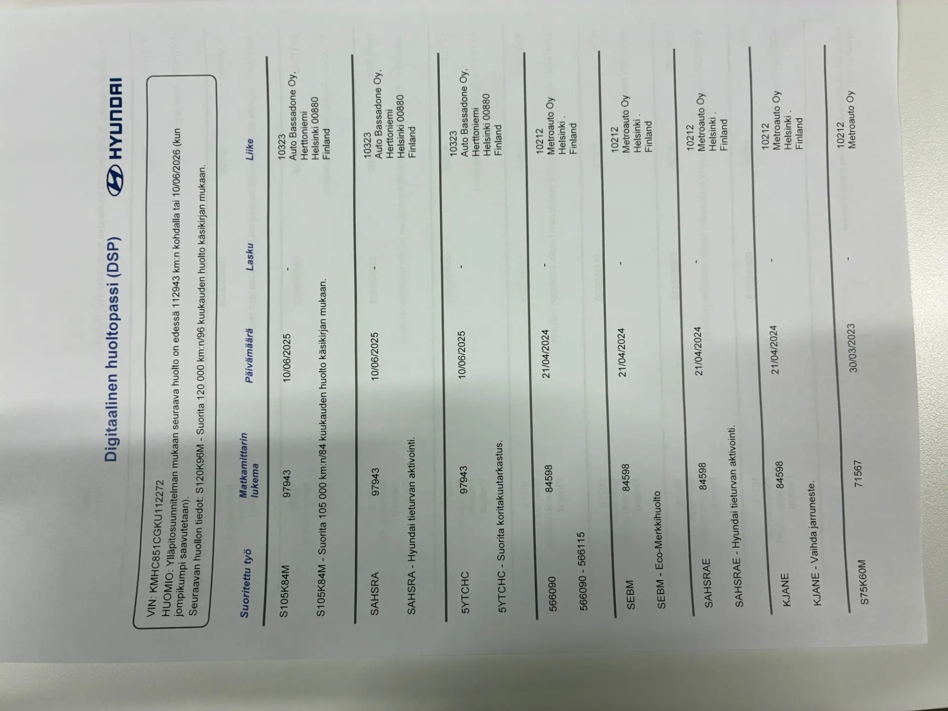 - Viimeisin huolto: 6/25, 98tkm