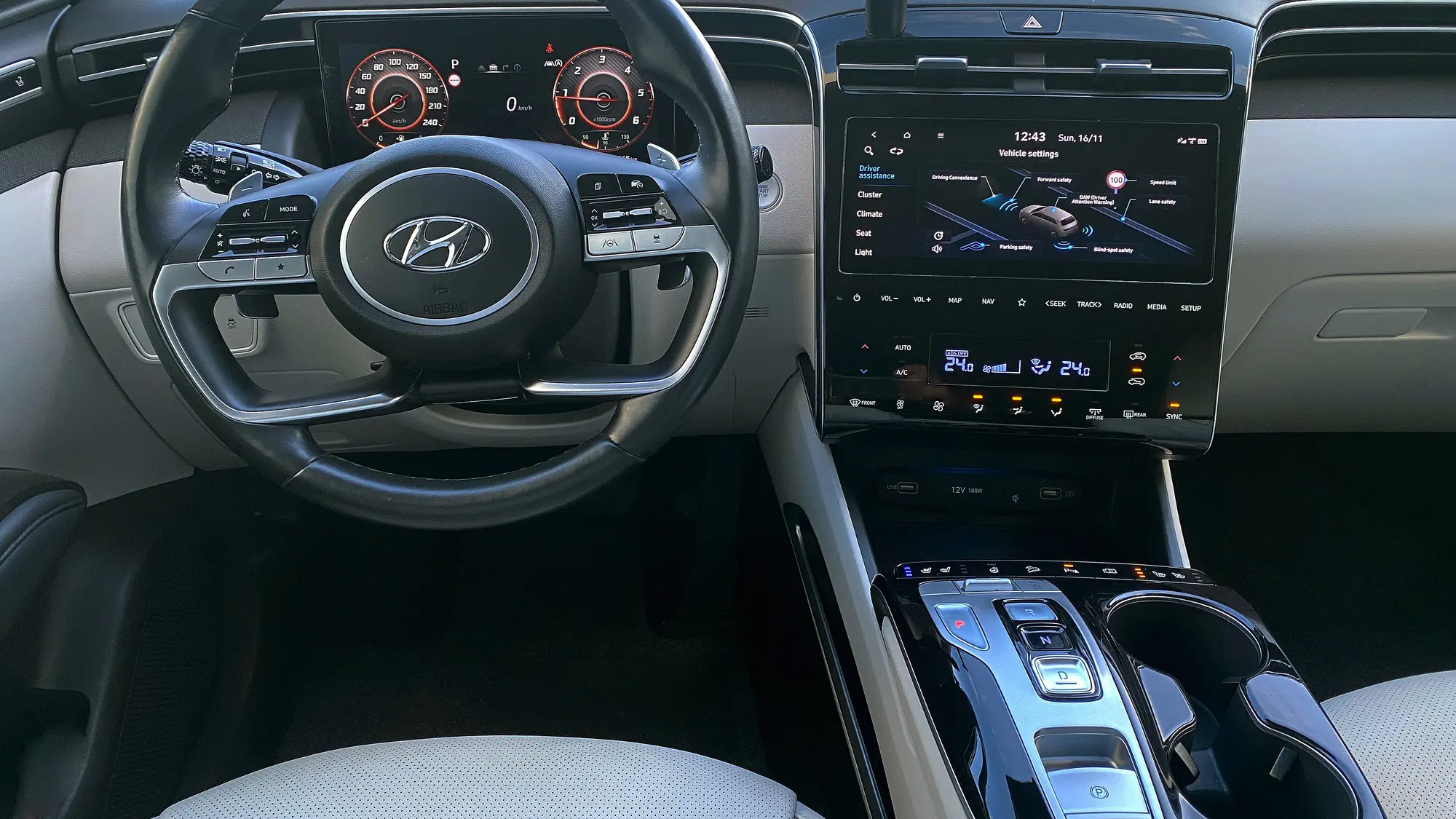 - Steering wheel: multifunctional, leather-wrapped, heated, sport steering wheel