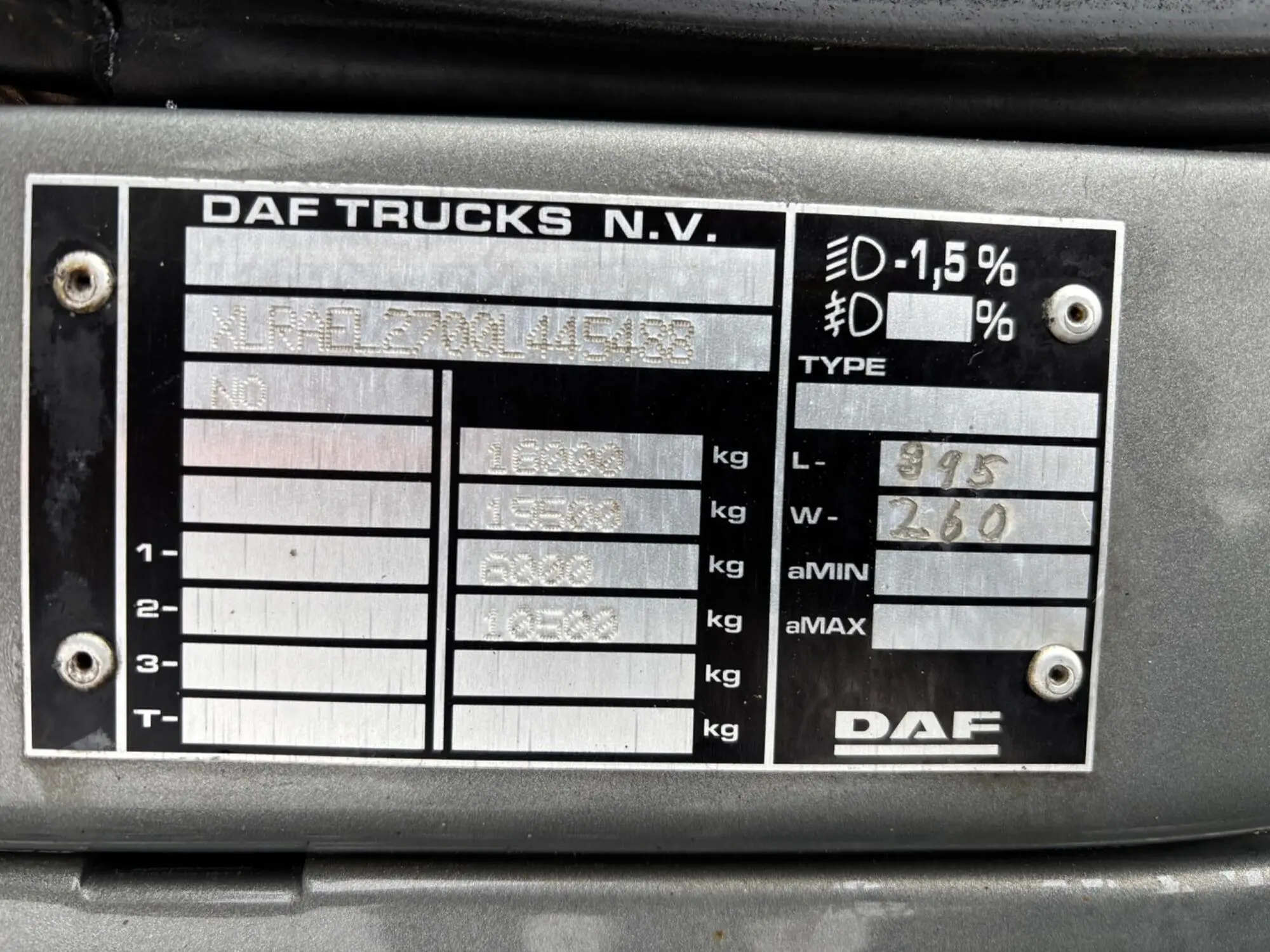 | Technical max. mass: | 16000 kg |
