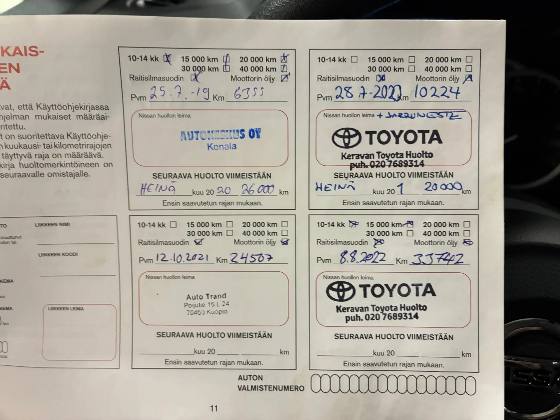 - Viimeisin huolto: 11/25, 102tkm